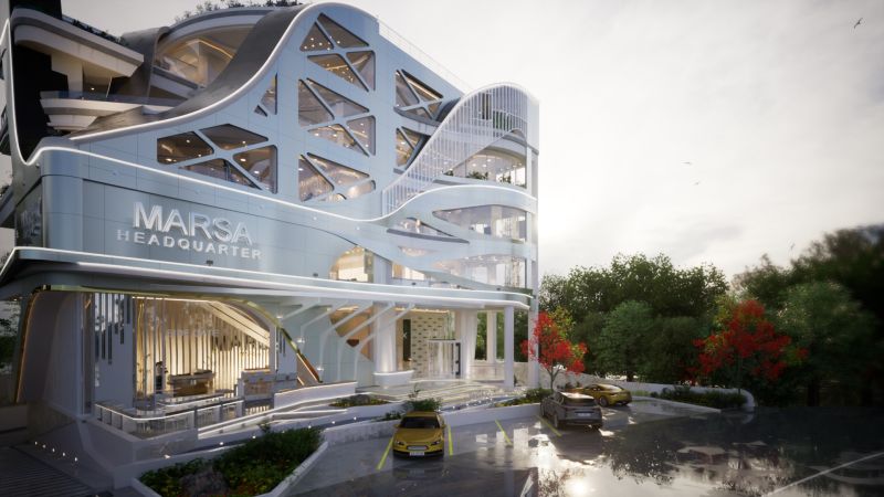 MARSA HQ is the office headquarter of Marsa17 Group, located at Surabaya city in Indonesia. Designed to be the central hub of the corporation's businesses and leaders of the companies under the group at national-scale. While designed as a featured-pack visionary work space, the designer confronts a solid artistic concept in both architecture and interior elements. Thus, a blend of minimalism luxury and farsighted neo-futurism creates a unique atmosphere for employees, even guests. Construction will be started in Q1 2024 (can be early/ delayed by corporate's decision)