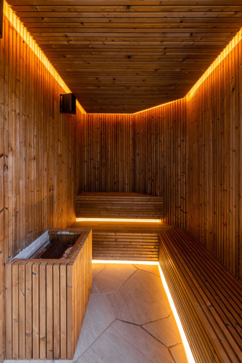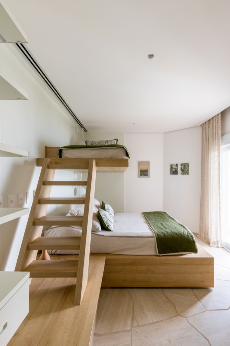 The lower floor contains the 4 main suites and also the service area that is needed. The functional kitchen is also located on this floor, connected to a breakfast area, an important room for the family and their guests.