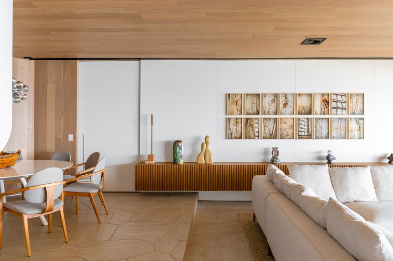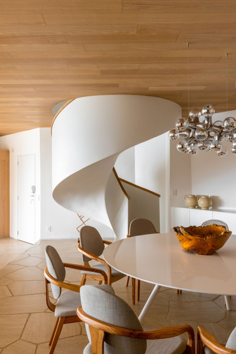 The remodeling of the Garcia Apartment considers the transformation of spaces and their uses in each of its rooms. The property has approximately 550m² distributed among two floors, located on the penthouse of a building located in Riviera de São Lourenço, a city on the coast of the state of São Paulo, in Brazil.
