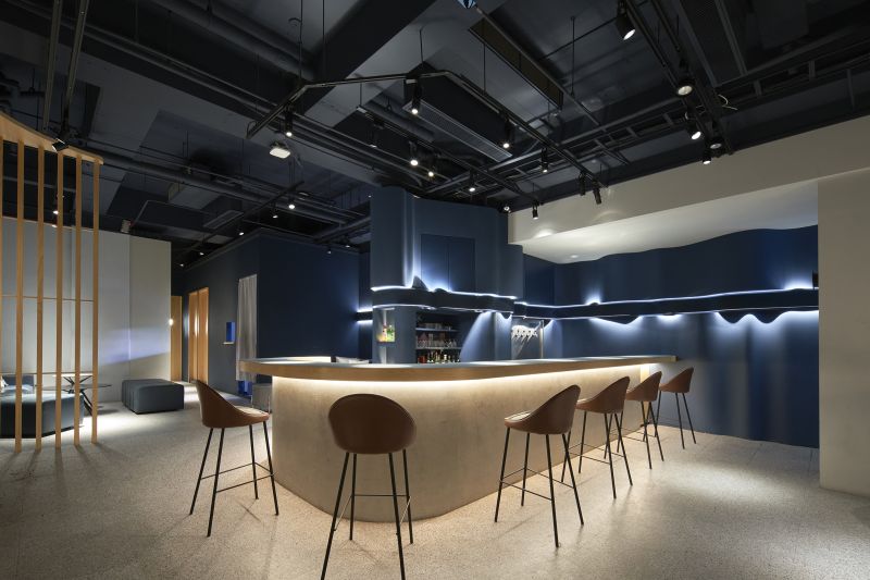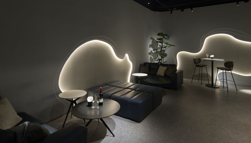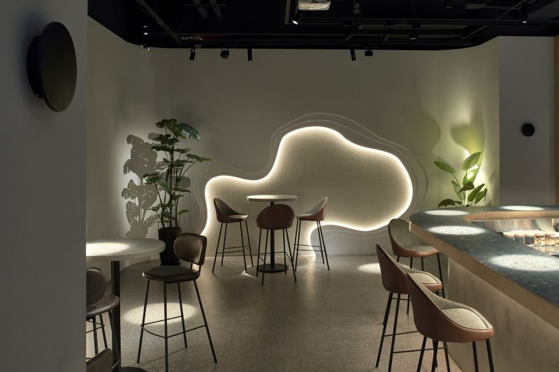 The parent company of skincare brand has a unique concept for new retail development with shop, bar, and events integrated into a hybrid space with a pickup kiosk. The inspiration of the entrance design resembles the cave because it’s the first place where human beings feel safe. To increase the sense of belonging for diners, the space is inspired by the characteristics of water which are variable and inclusive. People can relax as if they were at home, it is cozy and comfortable. Besides, warm color palette creates a relaxed atmosphere, appealing to modern women's aesthetic preferences.