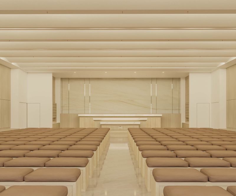 The Pu-Fo Buddhist Center, a meditation site for the Chung Tai Chan Monastery hidden in Tainan city. Through a delicate and holistic design approach that incorporates the wisdom and compassion of Buddhism, along with the use of sustainable green building materials, the center creates an immersive modern space. The streamlined design and clean, bright atmosphere allow practitioners to meditate and cultivate tranquility within a complete and functional compound.