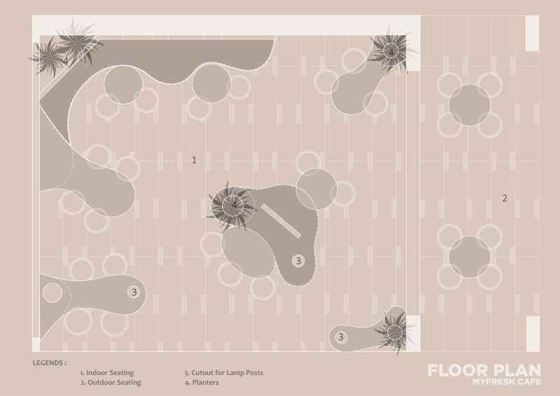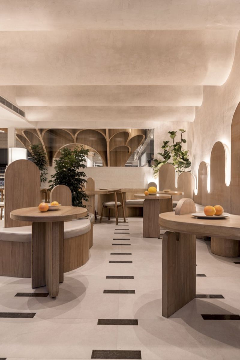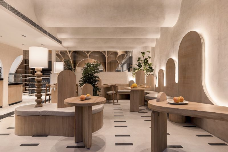 Myfresh Café is an attempt to create a bold and sinuous space that mimics natural form unequivocally and unabashedly. It is an experimental endeavor that explores the minimal aspect of seamless forms.