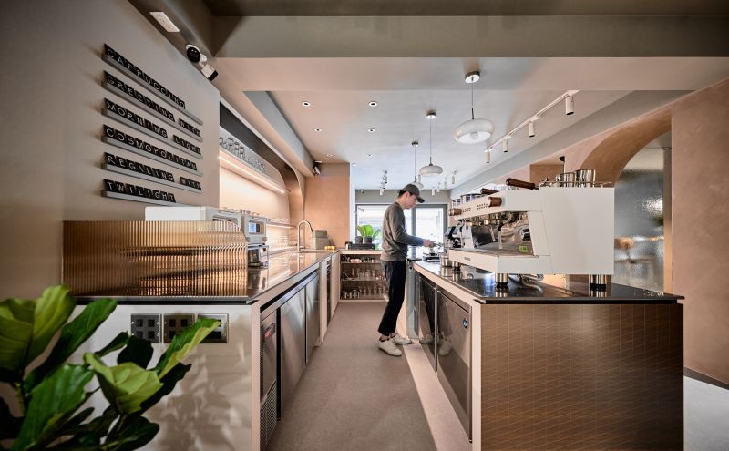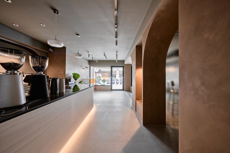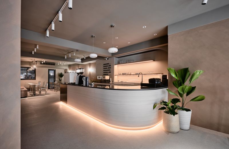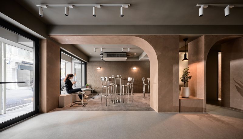 The original space was narrow and long, with three structural columns in the middle section, and the location of the units did not meet the requirements of commercial space. The design is based on a low-saturation color palette and a combination of media in a modern and purely decorative line, creating a relaxing corner with a modern tone and a calm and soothing energy.