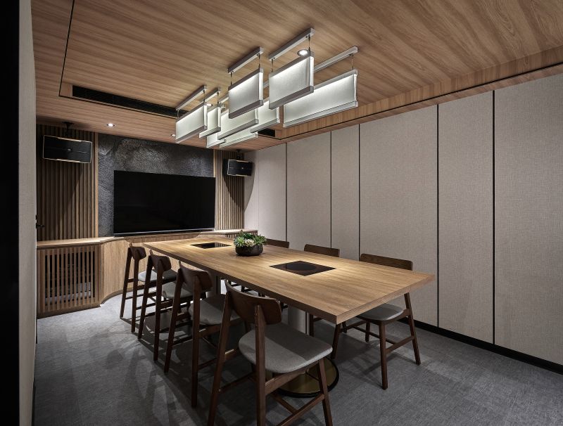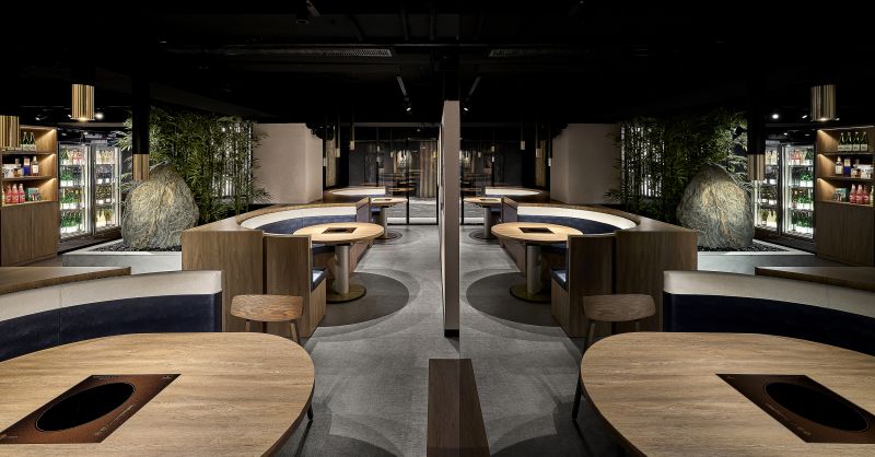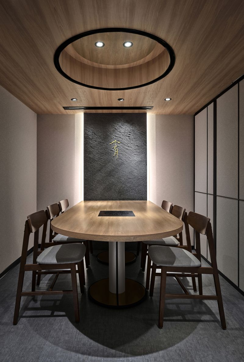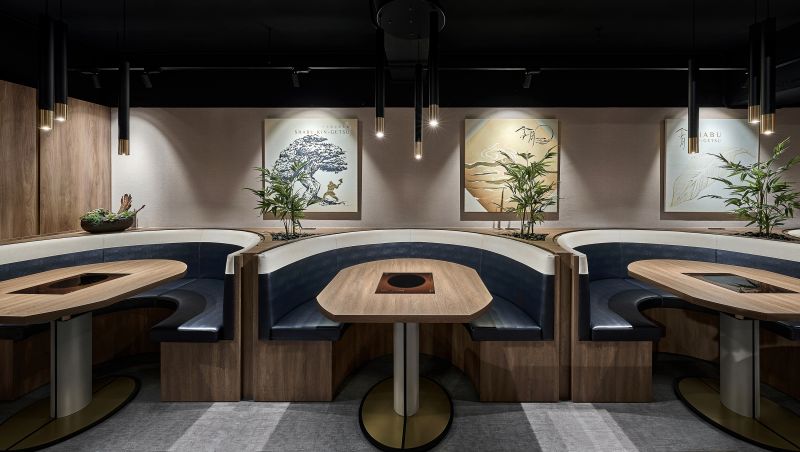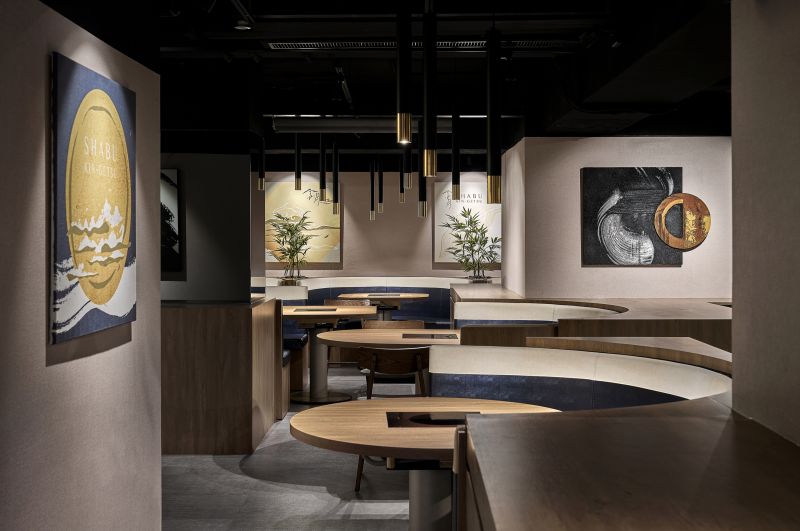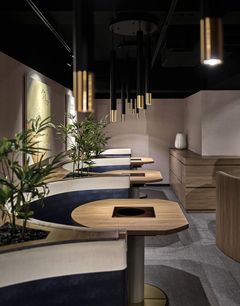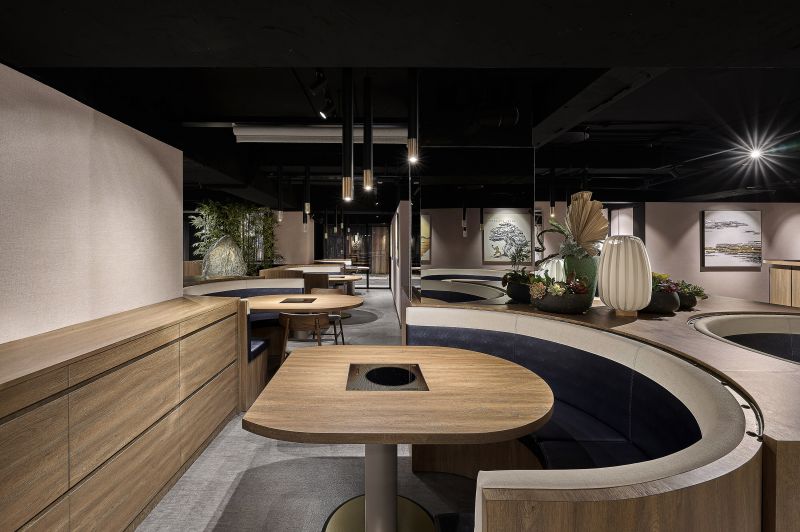 Inspired by the Moon word in the brand Golden Moon, we centered our design on the image of a Full Moon. Incorporating the concept of Roundness, we skillfully infuse the theme of a Full Moon throughout the feature wall, the booth-style seating area, and the tableware for hot pot dishes. By integrating the symbolism of completeness and togetherness that the full moon represents, we aim to convey a sense of joy and harmony to every guest. Moreover, we actively embed the concept of seeking various forms of balance, performing a design that agreeably complements nature-inspired cuisine.