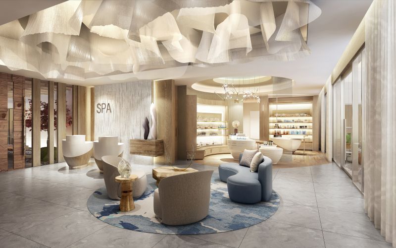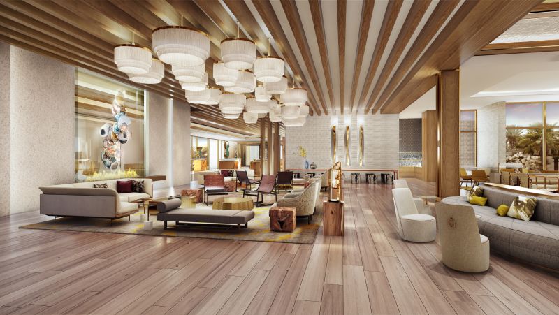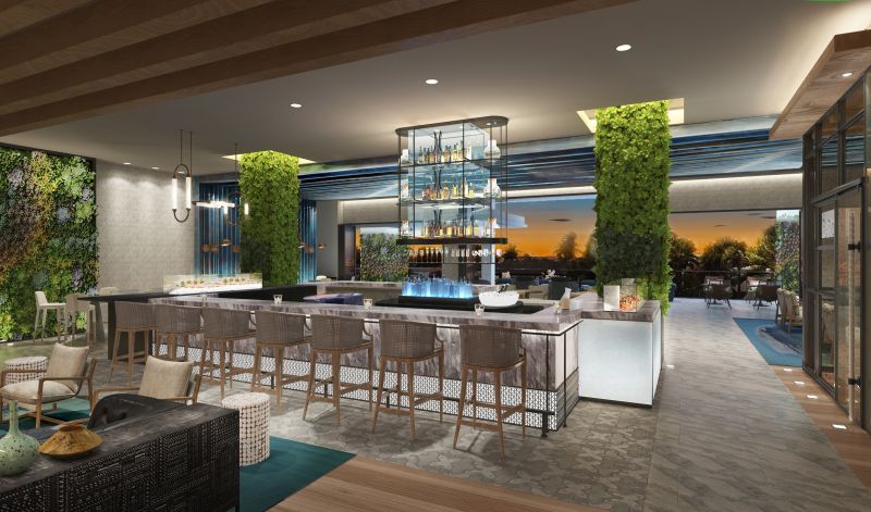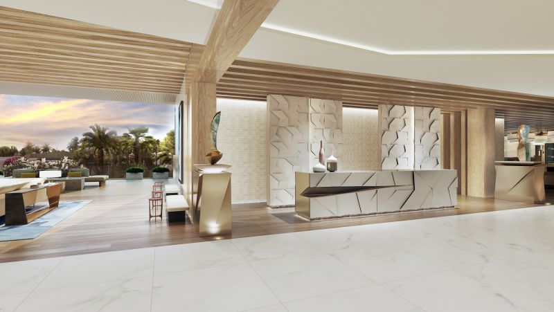 The vision was to create a sophisticated indoor/outdoor oasis. materials balance warm and cool with a base palette reflecting cooling waters. Subtle references to local gemology and copper mining influence custom decor elements. Scheduled completion in early 2024.