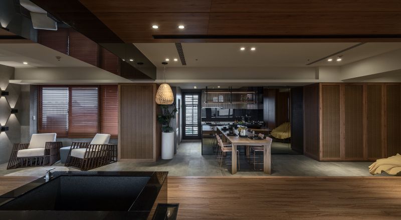 Breaking away from traditional interior design, this unimpeded layout with wide-ranging faux wood flooring allows unrestricted socializing and seamless movement. The large floor-to-ceiling windows bring in stunning river views, allowing one to relax. Additionally, inspired by water and nature, the design embodies a lush, tropical ambiance. We exploit dark wood and stone to create a sense of gravitas preferred. And couples with popular rattan soft furnishings to attract younger generations, broadening the potential customer base and increasing consultation rates for this building.