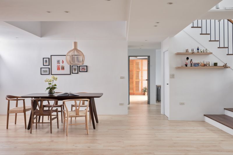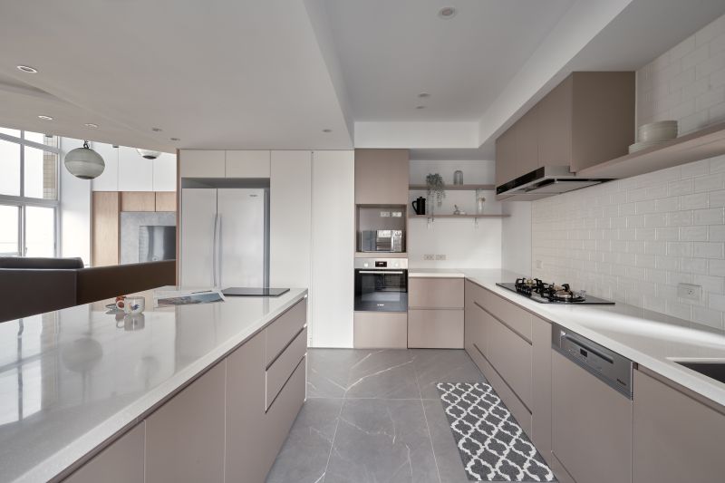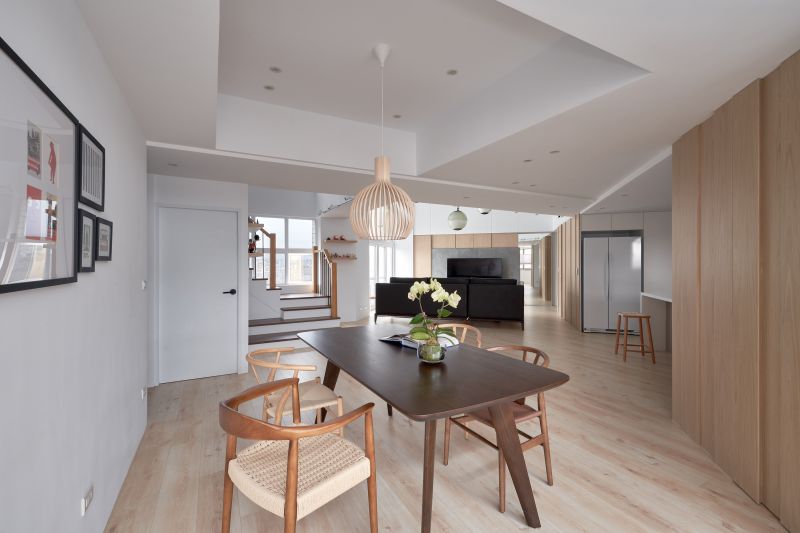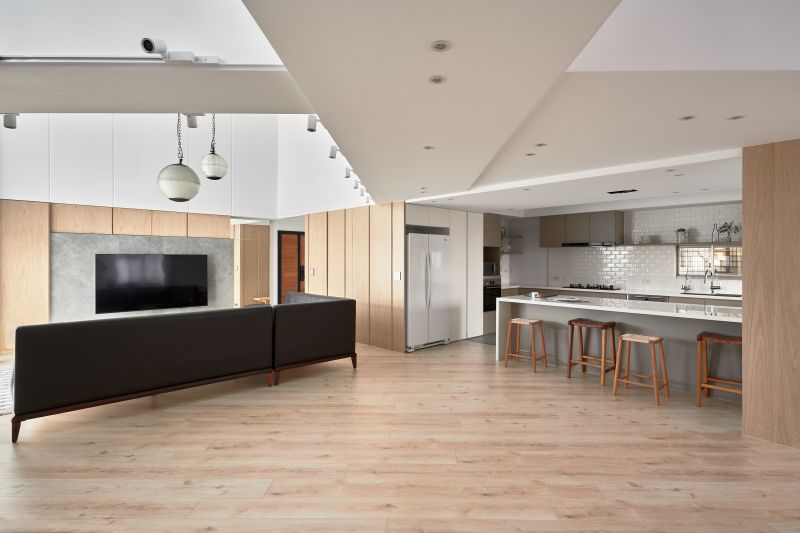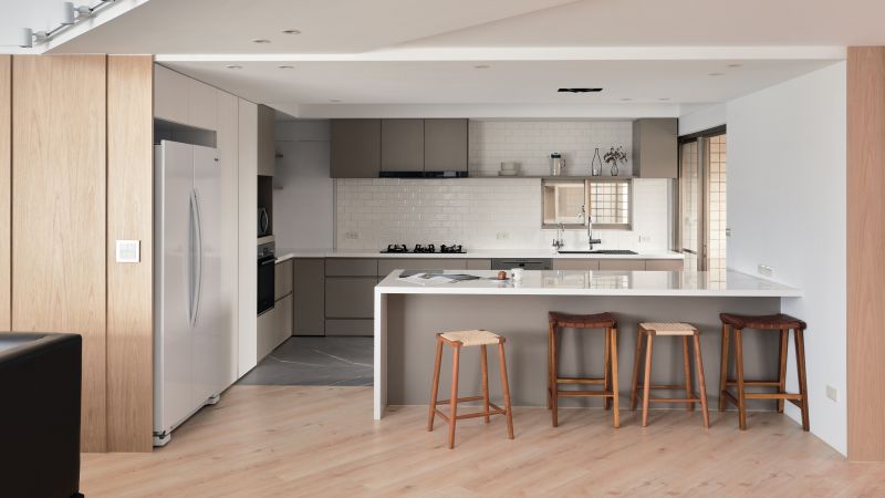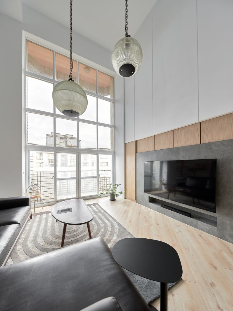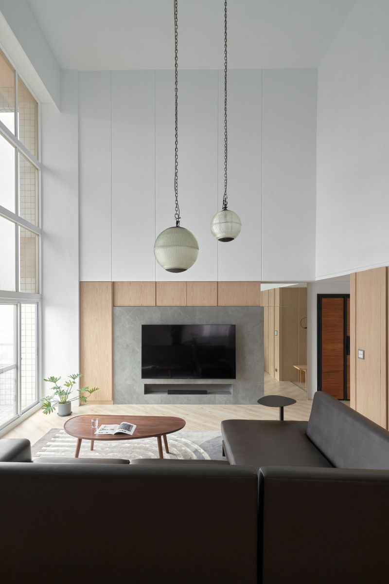 Corresponding to the hospitality of the homeowners, we simplified the private space and made the public space a hub of the home. Noticeably, the clean neutral colors presented a bright and cozy living environment incorporating large French windows, and the entertainment area revealed a wide and spacious flair based on the original layout. Additionally, a large kitchen island and cabinetry facilitated an accessible cooking space, and the considerate arrangement was welcoming to host friends and serve fine cuisines. We furnished a pleasant and inviting zone for the homeowners and their guests.
