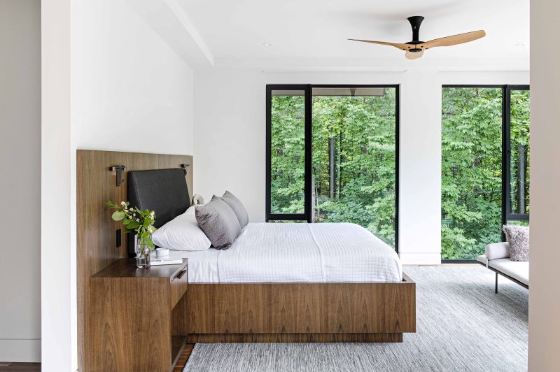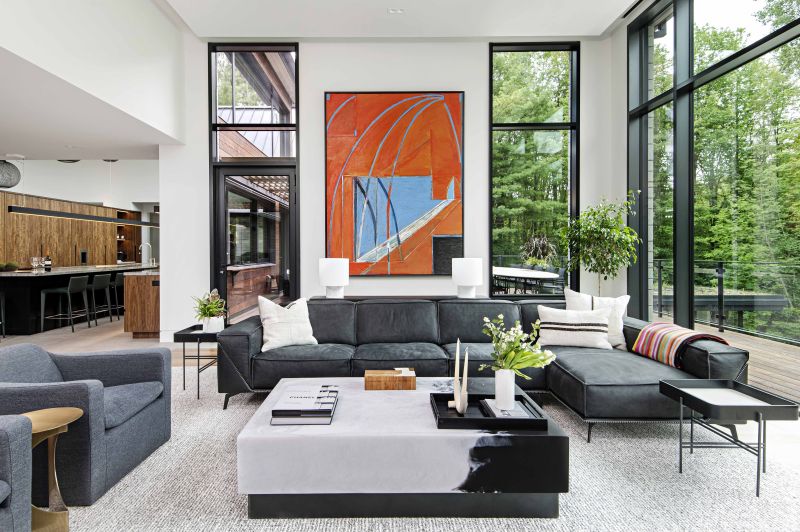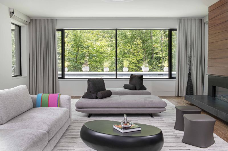 Our Forest Estate home located on a large private country lot has a deep aesthetic connection to its natural surroundings. This luxury modernist home with two levels nestled into the natural slope of the landscape, is optimized for a flow of movement and light.