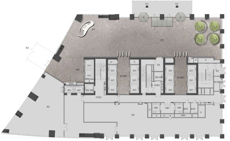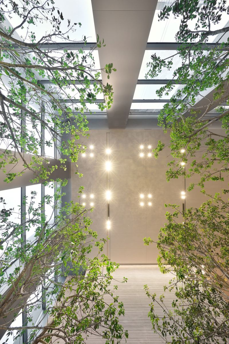 The concept of the project is inspired by "everything grows", and the most powerful force of the earth runs through the public area. By using the core of the growing grain stone, the building reflects the power and life of the earth. Uprooted indoor trees extend nature into the sky garden, creating a unique natural atmosphere.