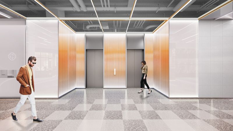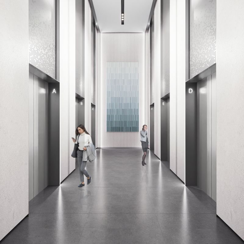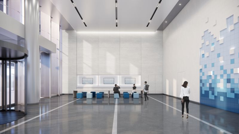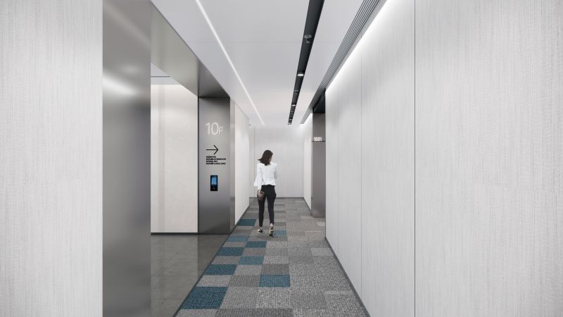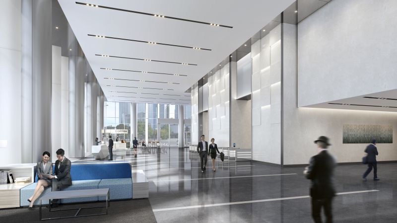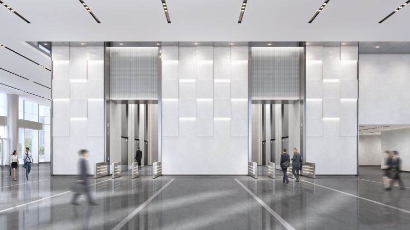 With a gross building area of approximately 128,000 square meters, the design aims to reflect the vibrant and dynamic nature of the district and its tech-focused community, creating a space that encourages collaboration and innovation.The "Pixel Mosaic" design highlight element is used throughout the office building's interior design, creating a modern and fashionable space ambience. The undulating block effect is prominent in the main facade of the elevator hall in the indoor lobby area, while the reception desk's design echoes the main facade's pixel effect.