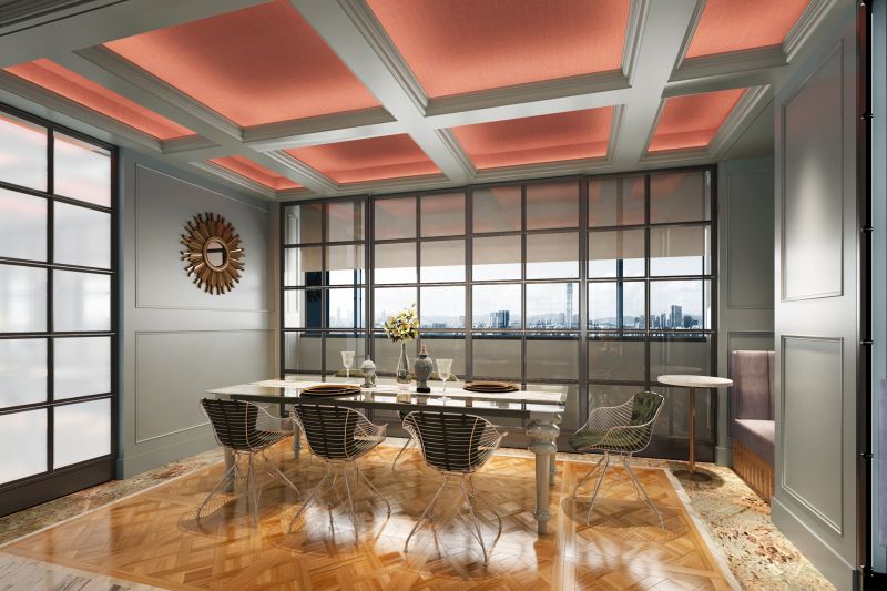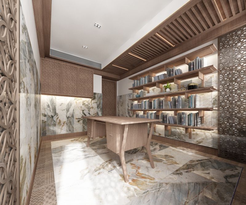To leverage abundant daylight in this sun-filled abode, the living room is placed at the sunny side. The layout allows natural light to flow uninterrupted into the connected living room, the dining room, the piano room, and the Buddhist altar. These spaces are separated by the roof ridge, bookcase wall, and sliding glass door. The seemingly unobstructed open layout clearly defines each space, creating a nicely blended balance of strength and softness.
