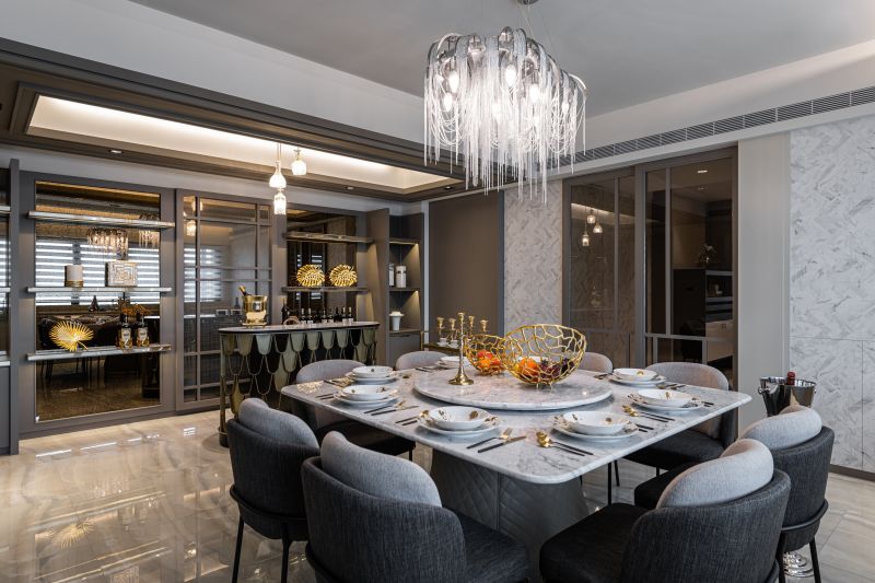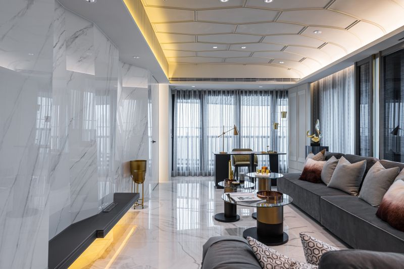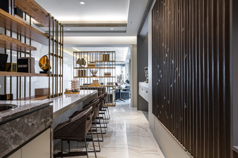 This project is a single-story residence with an actual area covering 250 square meters. In the early stages, a new layout and line of movement were tailored according to client needs. Common areas such as the foyer, living room, tea room, and kitchenette were arranged in the center. The standalone bedrooms were planned at the far ends of the two sides to ensure that the common and private areas are not mutually interfering when someone is moving around.