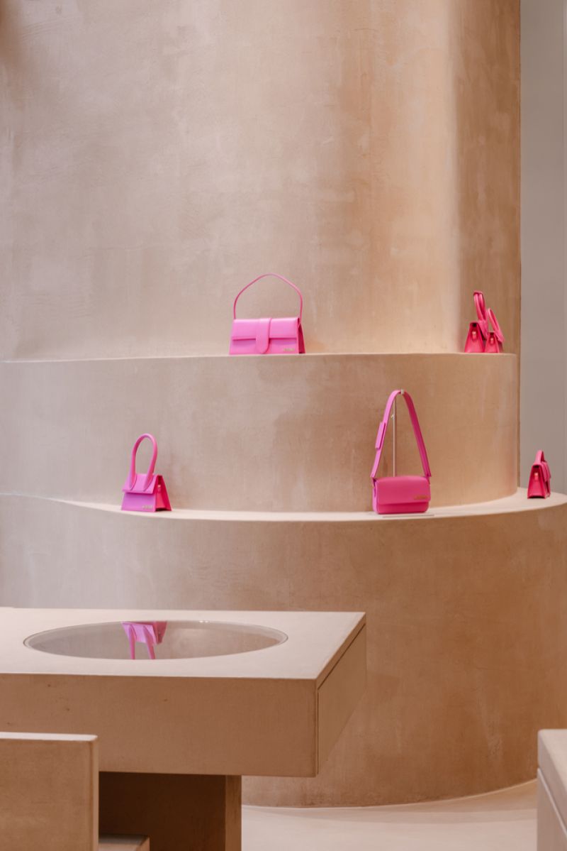 he design of the Jacquemus boutiques in London and Paris began with the idea of testing the limits of working with a single material. Drawing from the brand’s origins in the south of France, AMO aimed to capture the atmosphere of Jacquemus’ native Provence through the materiality of the spaces. Instead of working with form and deciding on the materials afterward, the materials were chosen at the outset, guiding the shape of the space through the design process.