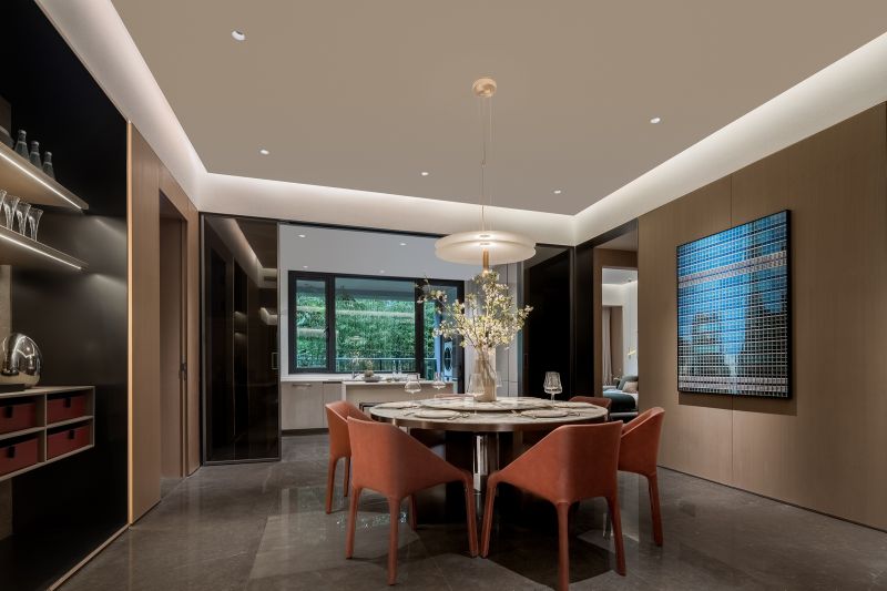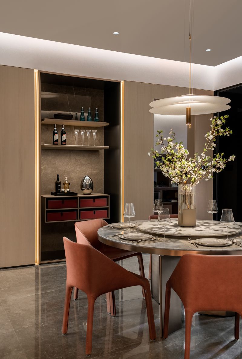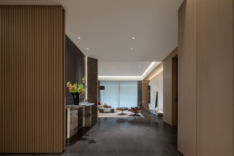 A comfortable space design is not one which is meticulously created through repetitious elements, but a more simple and natural environment that creates tranquility. In order to maximize privacy while enabling easy interaction between the shared spaces, the bedrooms have been located in the four corners of the apartment, while the dining room, kitchen and balcony are integrated to flow one into the other, forming the room type called a "four-leaf clover". The apartment’s open circulation replaces the traditional hallway, maximizing the space and creates a contemporary feel.