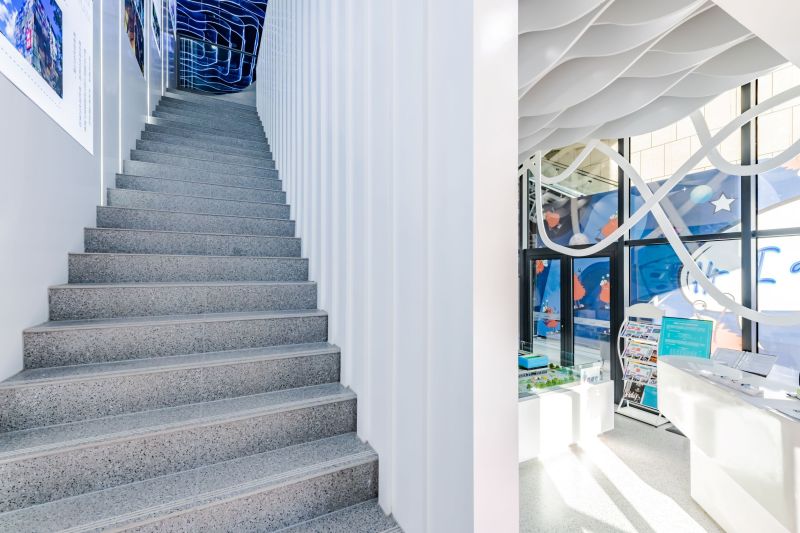 The sales centre intents to deliver an experimental experience to the visitor with various virtual and physical display design. It includes both actual model and multi-media simulation to let visitor to have various experience of the development. Every functional area reflects and showcases design element relating to the development, such as the reception lobby relates to the ocean-theme shopping Centre with waving ceiling strips, so that the development branding can permeate every aspect of the building interiors.