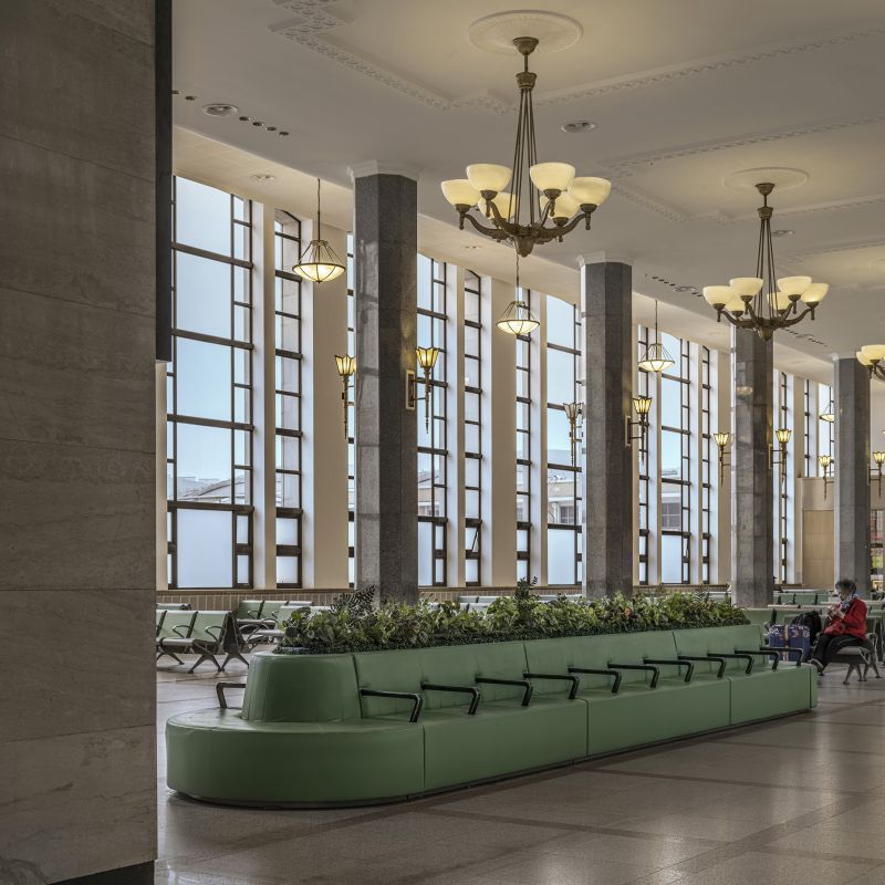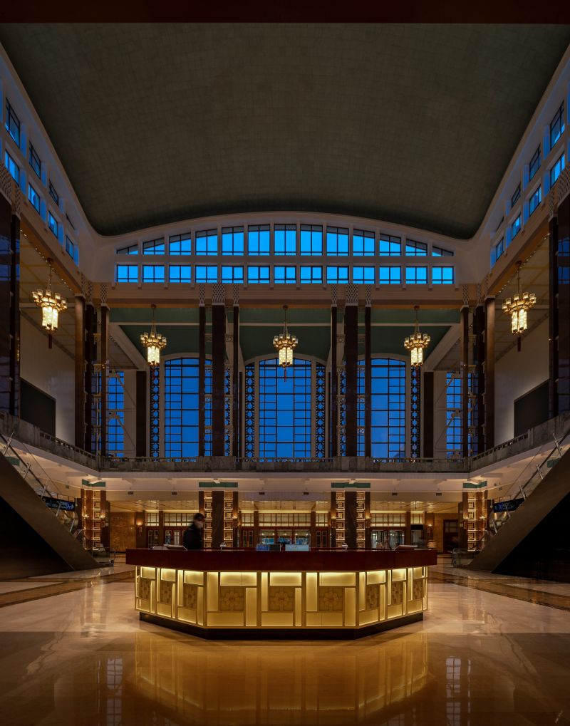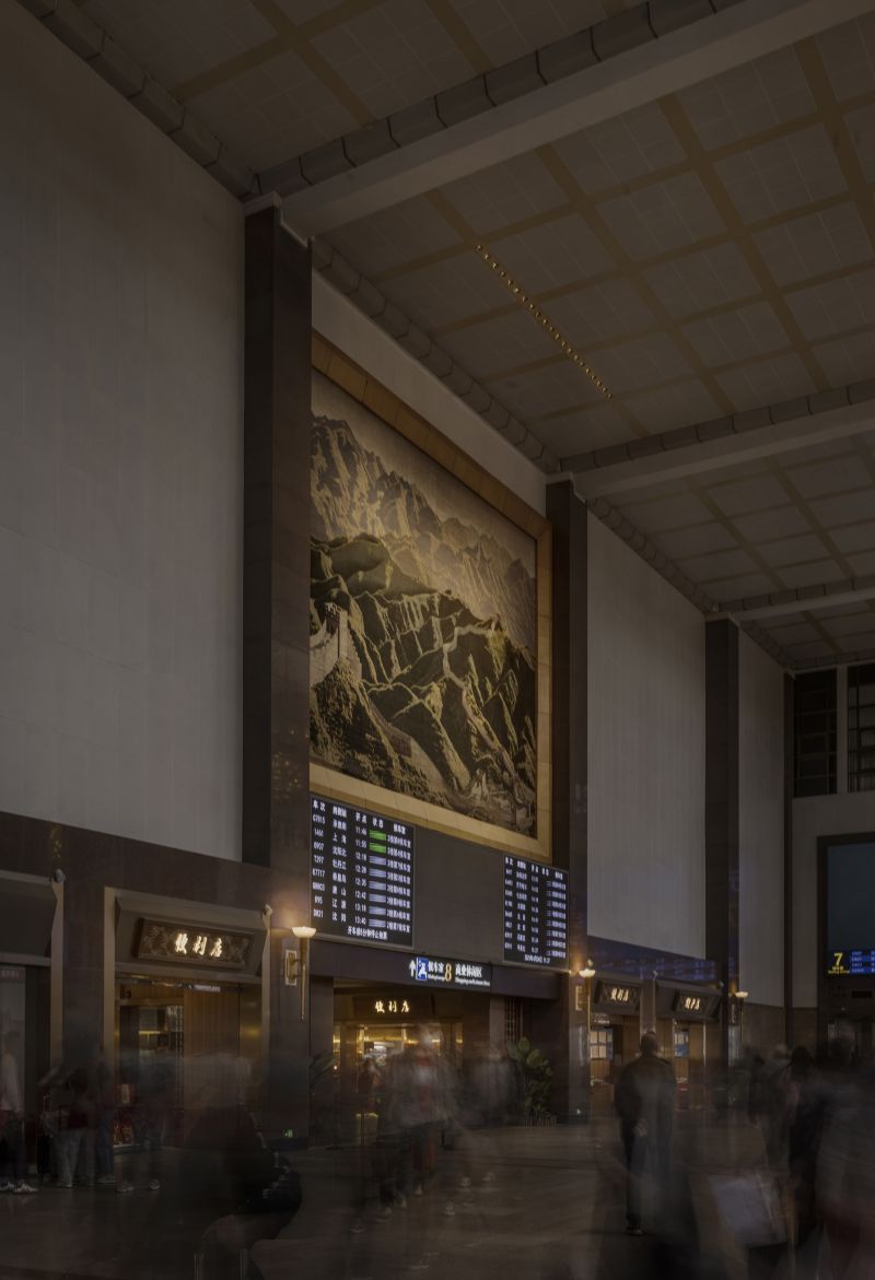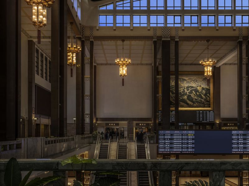 The scope of the interior renovation of Beijing Railway Station includes the Central Hall, the 4th Waiting Rm, and the Central Waiting Rm. The design tasks encompass interior design, commercial and media reorganization, as well as lighting and wayfinding system design. It is one of the top ten most important buildings in the capital in the 1950s.After six months of design work, with minimal cost and a construction period of only three months, a comprehensive renovation of the internal space was carried out, enhancing passenger travel, commercial services, and cultural experiences.