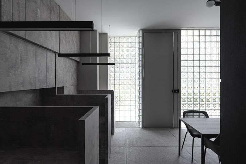 The height of the site is excellent. The first floor is 3.5 meters high, and the second floor is 2.8 meters high. The designer takes common materials such as concrete and glass blocks to create a space with a natural atmosphere related to light. Everywhere people see or touch, there is an unadorned look. The space is relaxing without being overwhelming, and at the same time, it reflects the core of the space design that the designer intends to show.