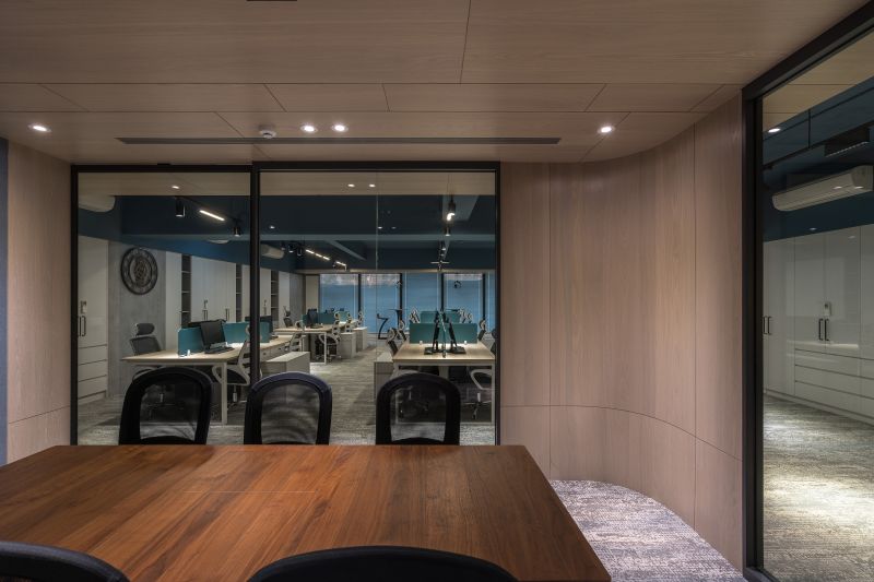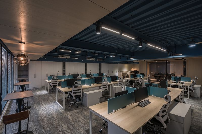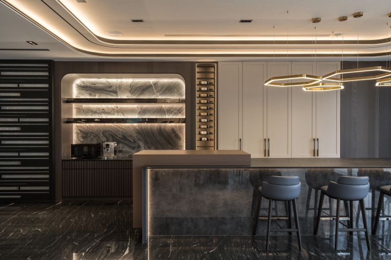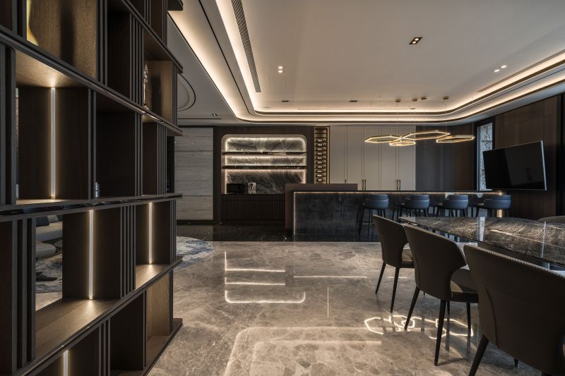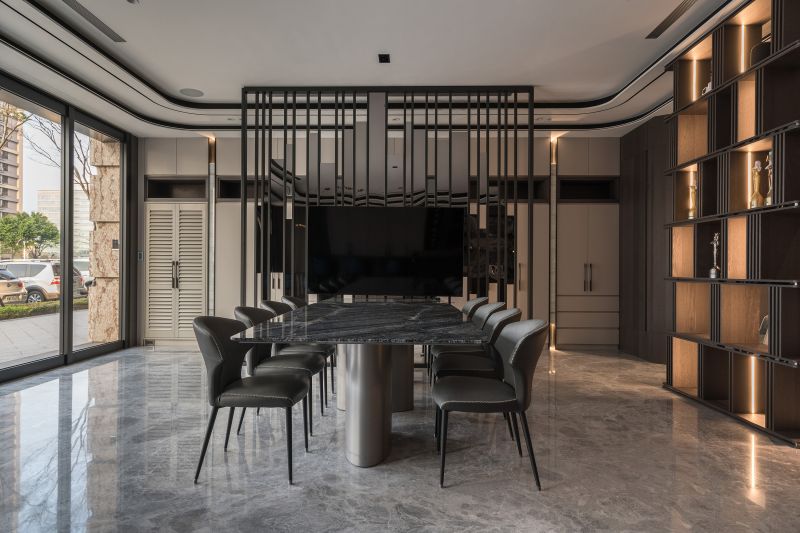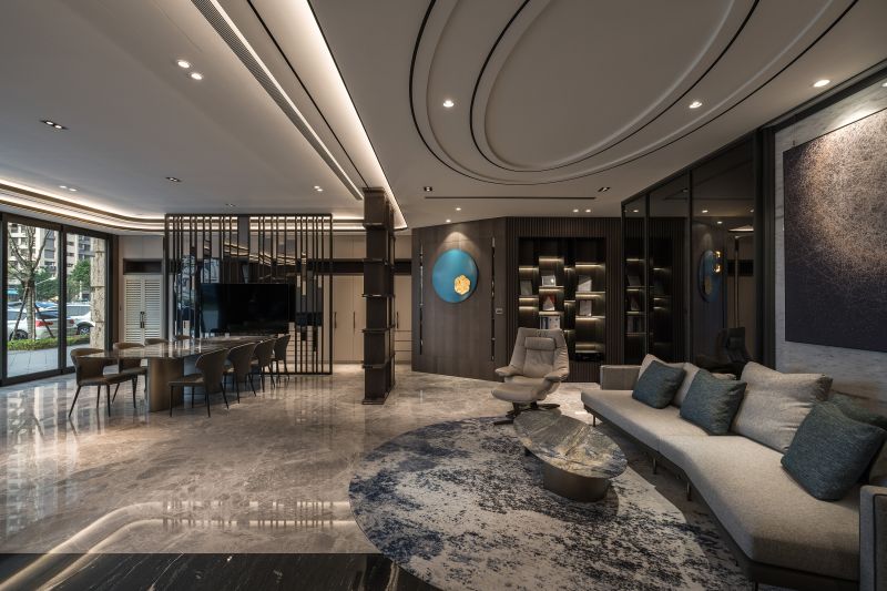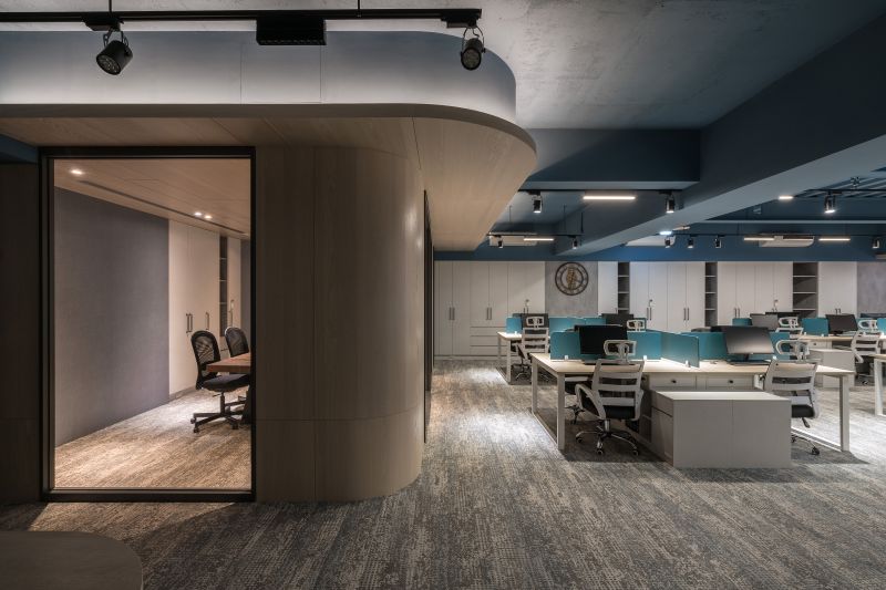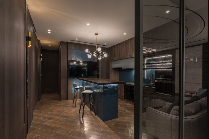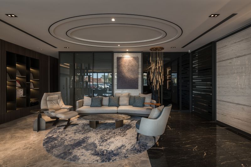 At our interior design studio, we thoughtfully divide the first and second floors into a reception area and office space. By incorporating diverse and eco-friendly materials and furnishings, we provide a comfortable and healthy environment for clients and designers to engage. We artfully create a grand and inviting entrance. With carefully curated lighting and intricate textures, each step unveils a scene reminiscent of a modish and exquisite hotel lobby. Ascending to the second floor, a tranquil ambiance envelops as shades of blue and green permeate the space.