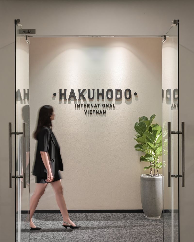 Discover the Hakuhodo office, masterfully designed and built by Space.s.Hakuhodo Vietnam is a subsidiary of Hakuhodo Inc., one of Japan's leading advertising and communication agencies. With the desire to reflect the company of the advertising industry from the very first impressions, the office emanates simplicity and professionalism through a monochromatic palette. Contracted in black and white, the design reflects their brand characteristics. This space goes beyond its visible limits; a multi-functional pantry fuels collaboration and creativity, becoming the heart of interactions.