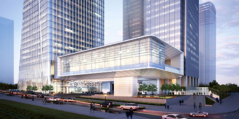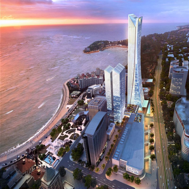 The project is an urban high-rise complex spanning over an area of 300,000 square meters. It has been thoughtfully designed to accommodate a platinum five-star hotel boasting a gorgeous coastal view, 5A offices, premium boutique hotel, and metro-led underground commercial space. Aiming to become a new landmark in Qingdao, the 70-story tower, standing tall at a height of 328.6 meters, has a unique sculptural shape inspired by the city's sailing identity. The upwardly extending curve of the main tower symbolizes the grace and elegance of the Olympic sailboat.