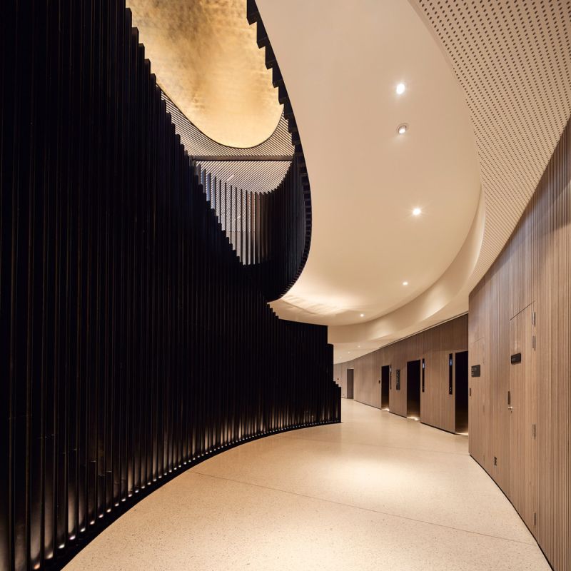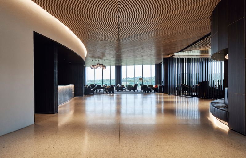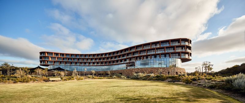 Positioned within a natural saddle adjacent to the Bass Strait, RACV Cape Schanck Resort rests amongst Mornington Peninsula’s rugged landscape, offering a robust architectural outcome that celebrates the rolling dunes and untamed nature of its site. Wood Marsh has drawn from both the topography and the corrosive nature of the coastline to inform the sculptural geometry and material selection.