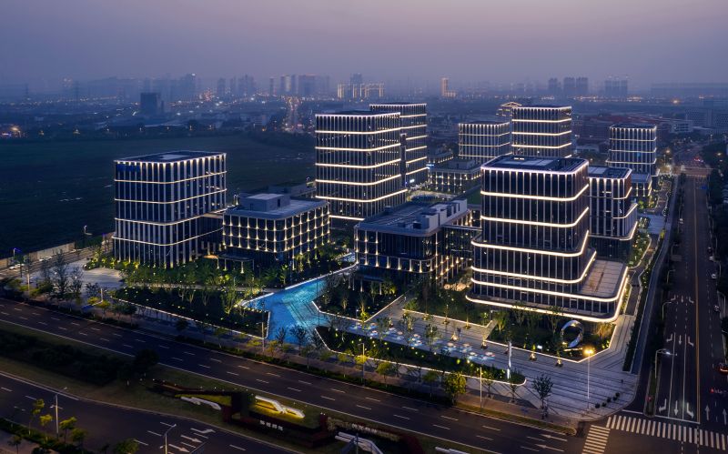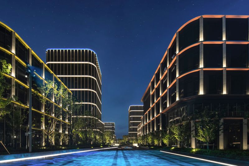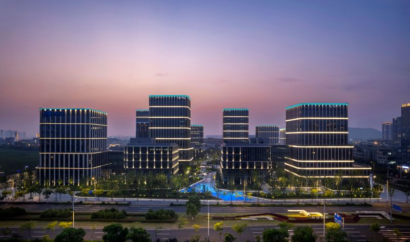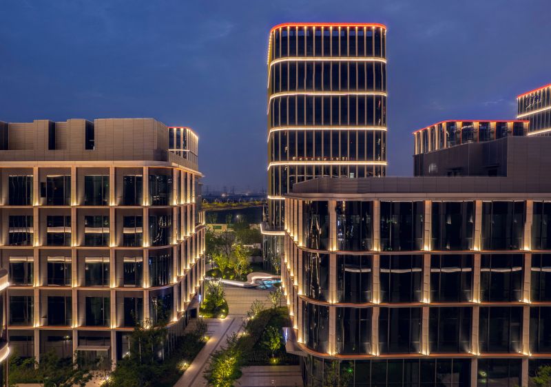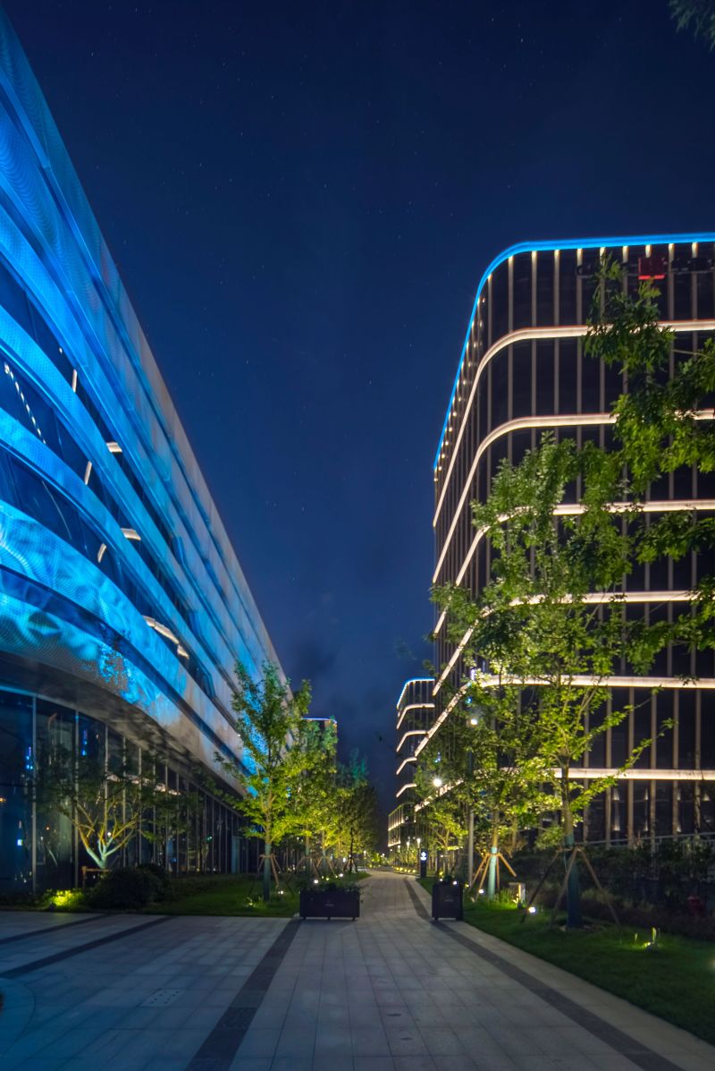 The night lighting design of Yingyuehu Science and Technology Park starts from the staggered form of building groups, creating a night image like the ups and downs of mountain peaks through the expression of light and shadow. Landscape lighting design focuses on the expression of key entrances and exits, rest areas, sunken spaces, and the unique shape of the ship conference center, highlighting the light and shadow effects of water patterns. The entire project is based on an intelligent lighting control system, achieving the performance and switching of multi scene lighting effects.