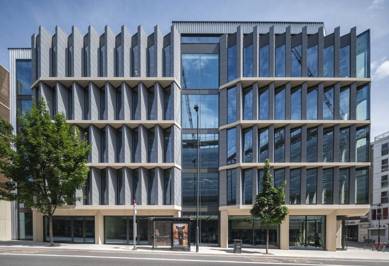 68-86 Farringdon Road’s complex and constrained site – previously a multi-story car park – informed a bold design language for a new hotel and office building that celebrates the area’s eclecticism. Situated between Bowling Green Lane and Vineyard Walk along Farringdon Road, the mixed-use development is formed of a new 180-key hotel for Whitbread’s hub by Premier Inn brand that neighbors a speculative office building for CLI Dartriver. Animating the streetscape of this bustling London thoroughfare are retail spaces, the hotel's café, and the office’s reception at ground floor level.