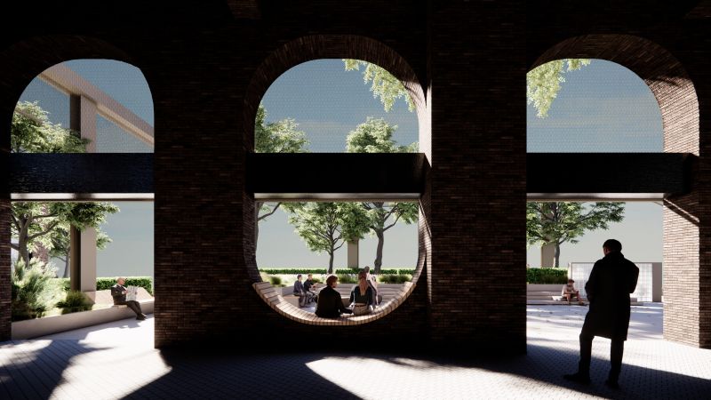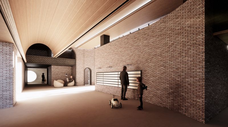 Varied building heights mimic a mountain city's organic growth, offering panoramic views. Arch walkways and brick elements connect the hospitality complex with existing old villages, forming a bridge between past and present. Rooftop gardens at different levels provide spaces for relaxation and community gatherings. Seamless transitions from dynamic open spaces to flexible zones encourage diverse cultural expressions.