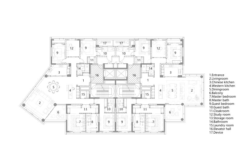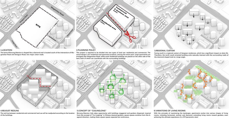 Facing south is a regional custom of Jiangnan residences, so the buildings have a large angle with the diamond-shaped land. Binrong Mansion fully takes this opportunity with buildings staggered and gardens dispersed, inspired from the concept of "Cui Linglong" in Chinese classical gardens: square spaces combine from the diagonal direction, making these square spaces separate but continuous. With the principle of maximizing the landscape, each residence enjoys a 180° view of gardens. Apartments extend living rooms toward gardens, even achieving the ultimate experience of a 270°panoramic view!