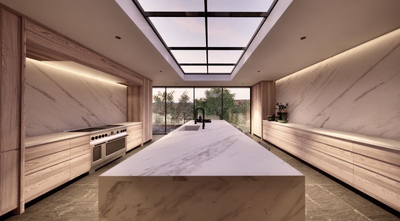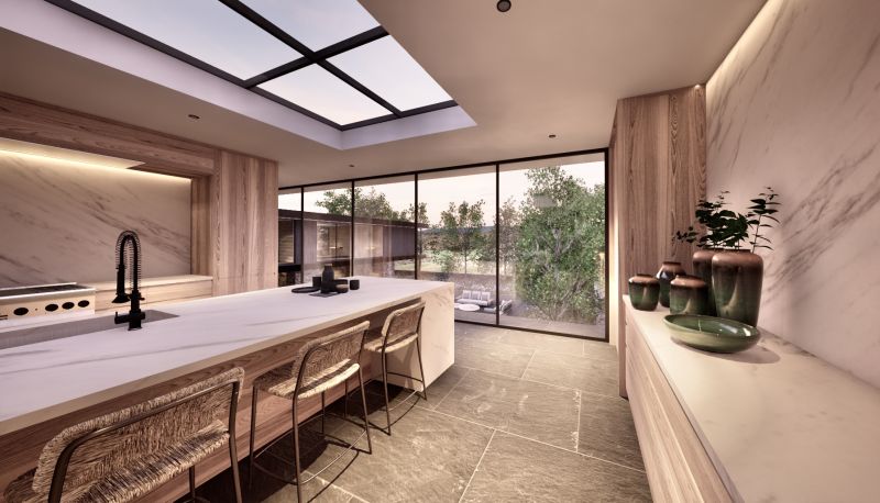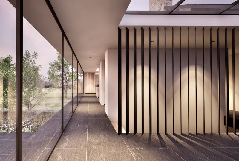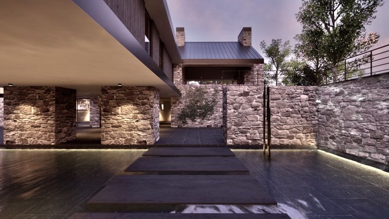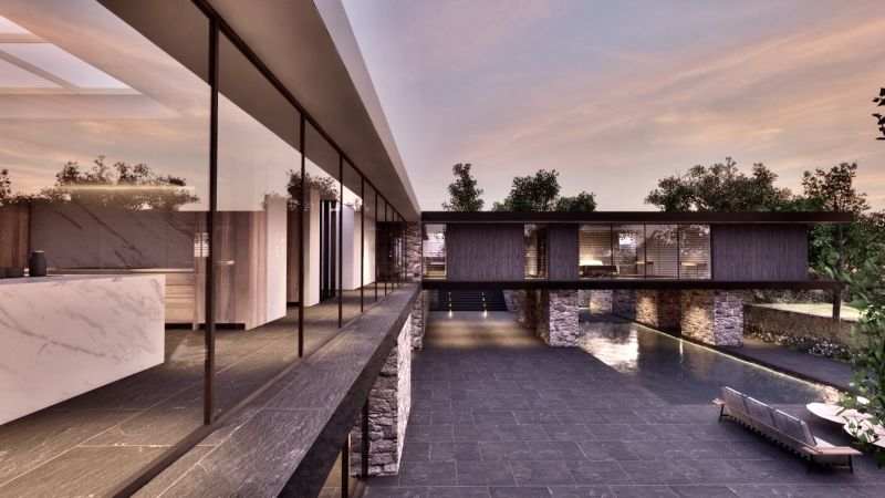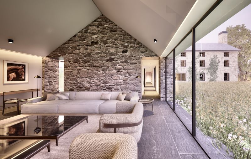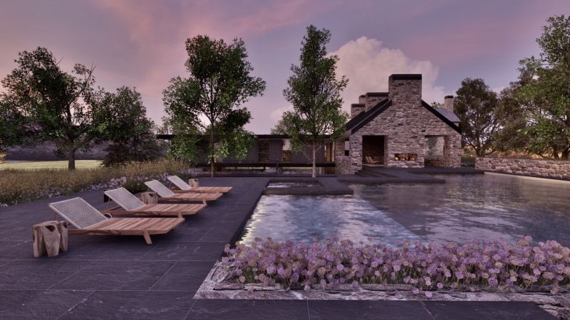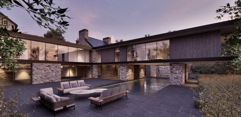 The “Farmstead” project is a modern extension of a historic stone farmhouse in Bucks County, Pennsylvania. This project merges contemporary and traditional design by incorporating modern glass elements to connect the farmhouse’s original spaces. These structures create a seamless transition between the old and new, enhancing the home’s natural surroundings. The design leverages the grade of the land, creating outdoor living spaces with unique visual interest. Farmstead emphasizes harmony between architecture and nature, providing a luxurious yet historically respectful retreat.