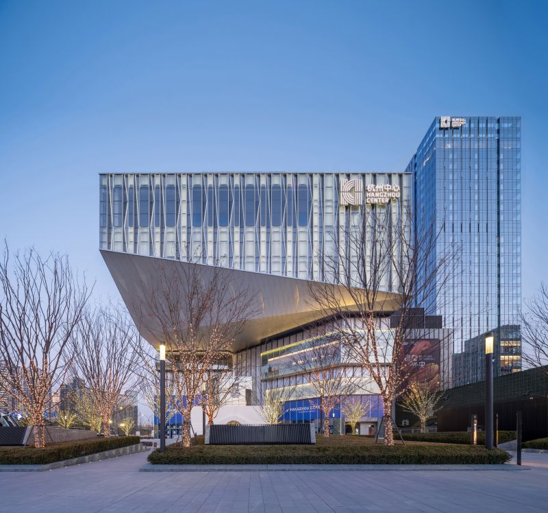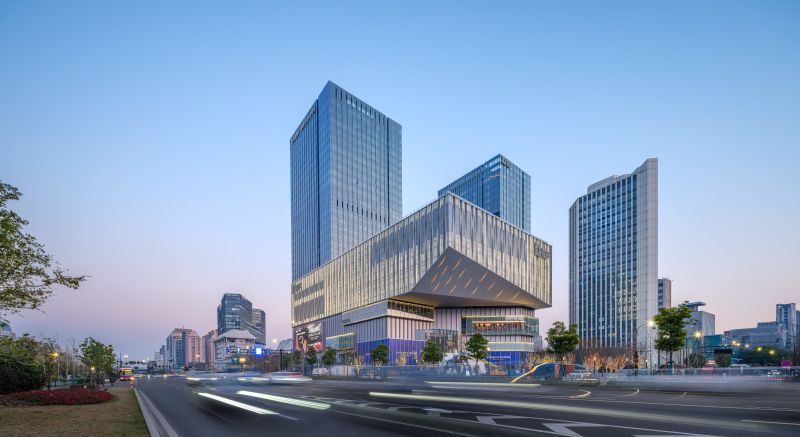 The development is integrated with a luxury hotel and Grade A office buildings, creating a prominent mixed-use hub for Hangzhou.