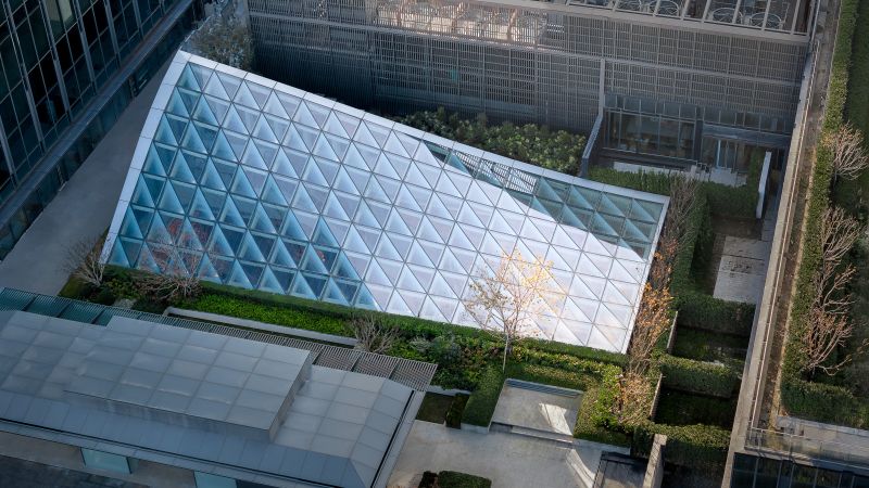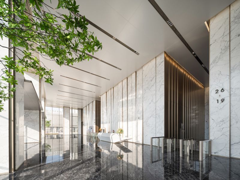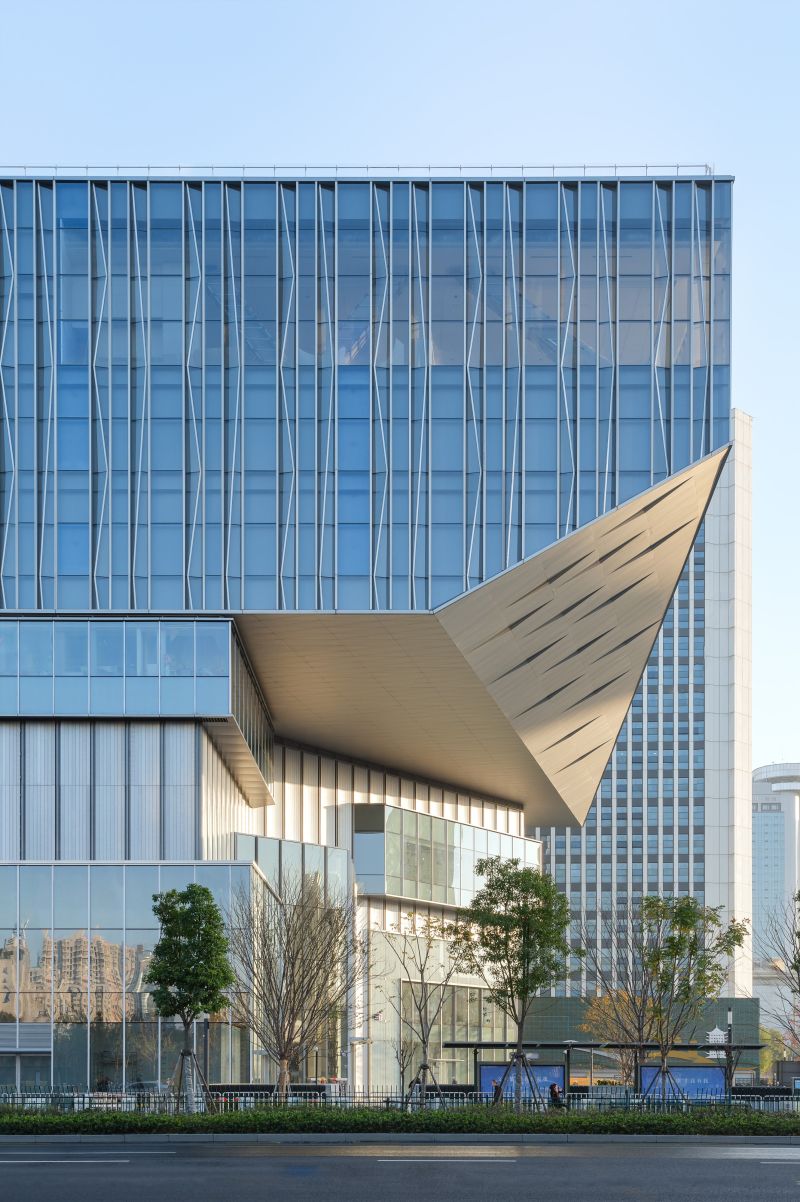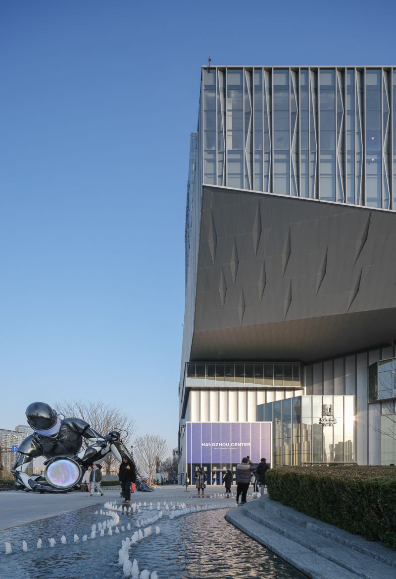 The design is inspired by Hangzhou's landscape, forming an elegant commercial addition to the district. The façade references classical Chinese paintings depicting the city and its traditional pavilions, Baoshi Mountain and famous West Lake.