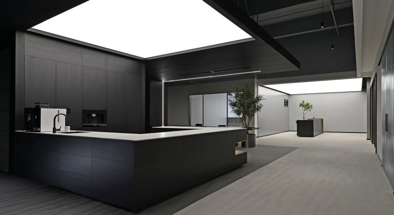 Design based on product positioning, exhibition hall and communication area into one, a box-shaped interactive space, so that the senses get a minimalist impression of art display space.