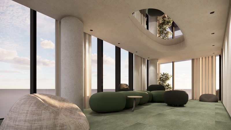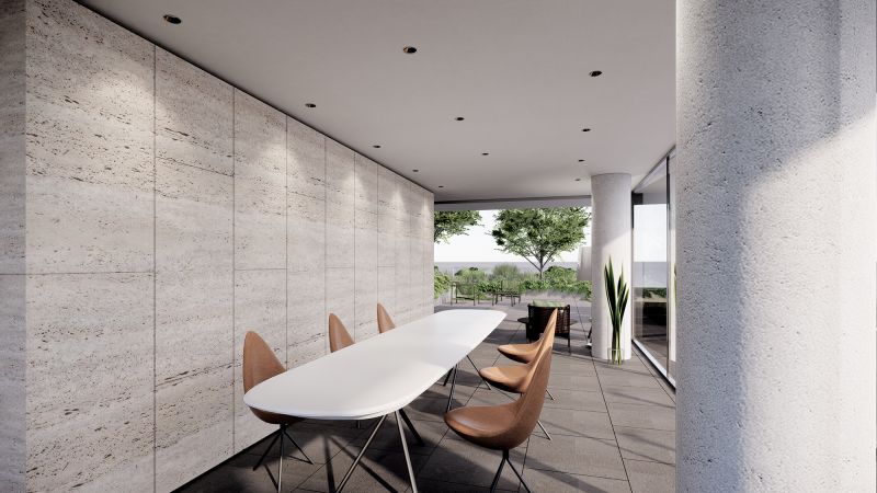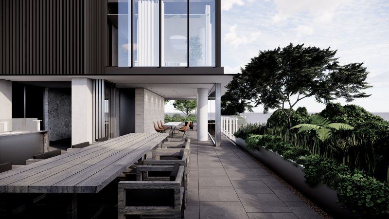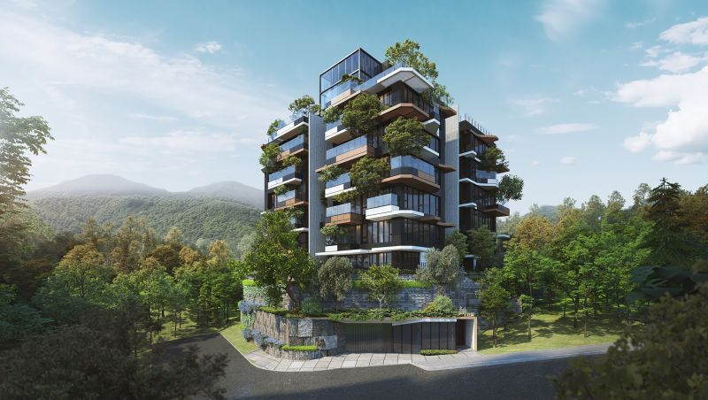 This six-story residential building is a magnificent example of modern architectural design. The building's sleek and minimalist style is perfectly complemented by the surrounding natural environment, with lush greenery and the foothills of Yangmingshan Mountain providing a picturesque backdrop. The building's design concept is centered on a "vertical forest," which seamlessly integrates the site's natural conditions into the building structure. This innovative approach creates a green, energy-efficient, and sustainable residential building that blends seamlessly with its surroundings.