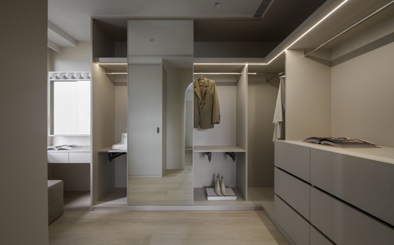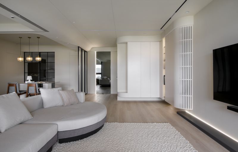 Simultaneously, in pursuit of creating a cleared-off living environment with a laid-back vibe, the entire space is adorned with non-toxic mineral paints in a soothing creamy white.