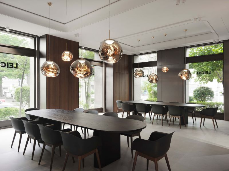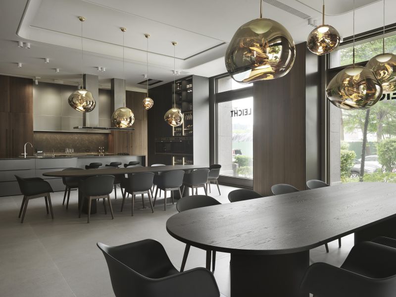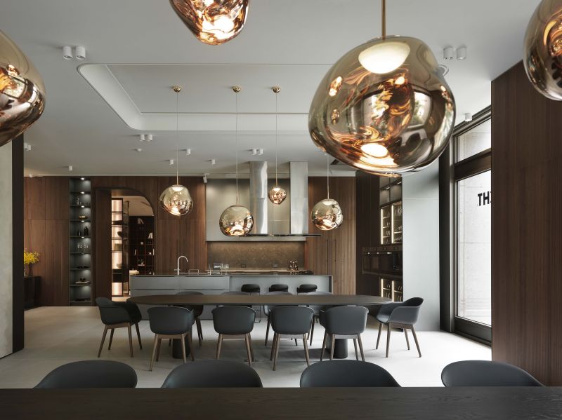 To accommodate both the number of visitors and comfort, the reception dining area features two long dining tables and multiple chairs, complemented by an open-plan experiential kitchen. This layout encourages free-flowing interaction between guests and chefs.