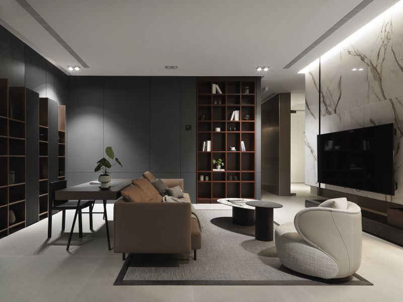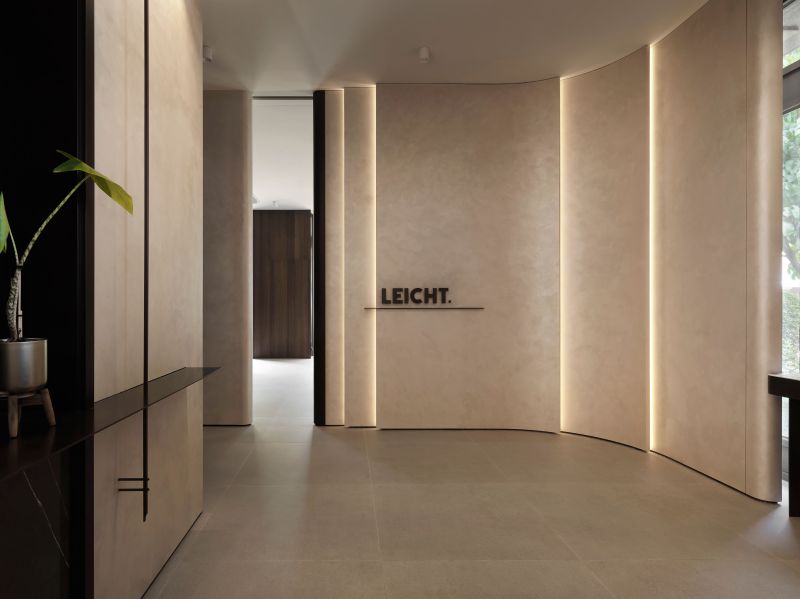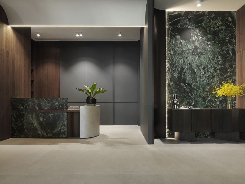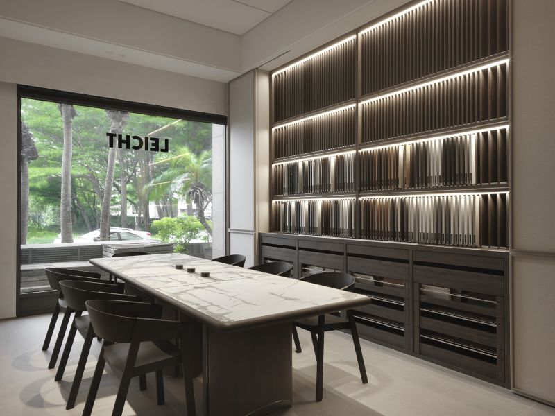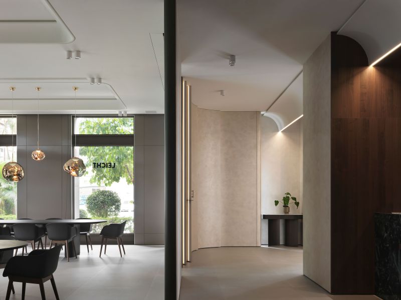 This flagship store caters exclusively to VIP customers, with the core philosophy centered around refined sensory experiences. The cabinetries are specially crafted with the latest green-toned and stereoscopic textured wood grain panels, breaking away from the surrounding light-colored special wall coating and taking center stage.