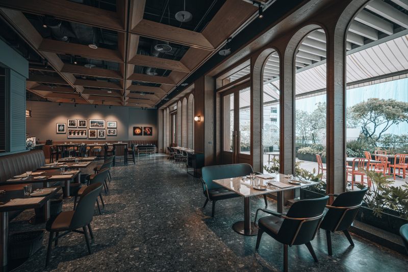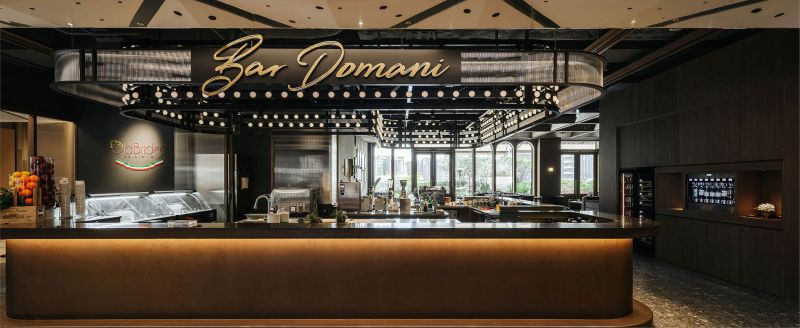 Bar Domani is designed to replicate Italian street scenes, using European arch-shaped windows to connect spaces, allowing customers to experience a leisurely dining atmosphere reminiscent of Southern European streets. The design focuses on maximizing visual effects by utilizing light to create depth and layering in the space, coordinating tones and furniture for a delicate and cultural ambiance, and enhancing the organic feel with a copper-coated bar counter. Bar Domani aims to evoke a home-like ambience for customers while enjoying the experience of a European-style restaurant.