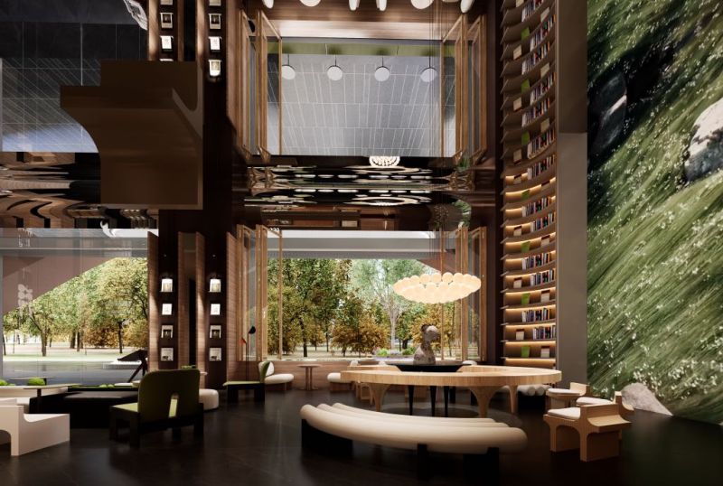 The project is inspired by the theme of "Urban Peach Blossom Spring", breaking away from the industrial boxy architectural form of most urban buildings, and using arcs as connections to link spatial forms such as the City of Inspiration, the Beauty of Creation, Tea Cooking in a Stove, the Agile Bamboo Residence, and the Sahe Journey, creating an art space that is boundless and undefined in terms of art, culture, and inspiration, and rendering a natural conceptual atmosphere of "breathing wilderness, inspiration boundless".