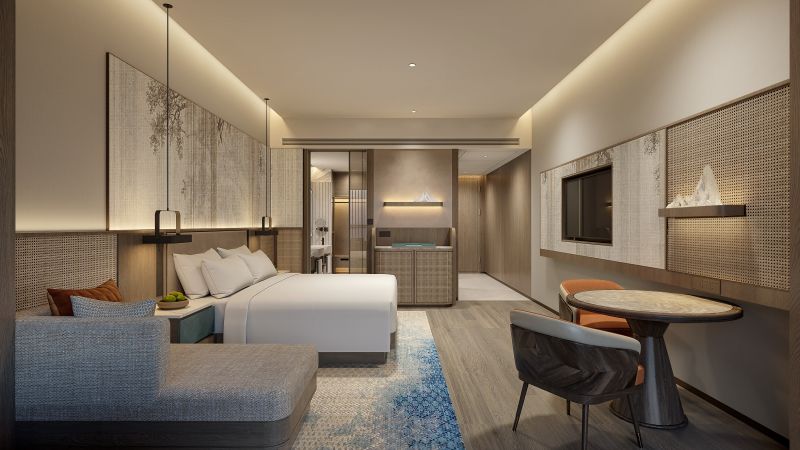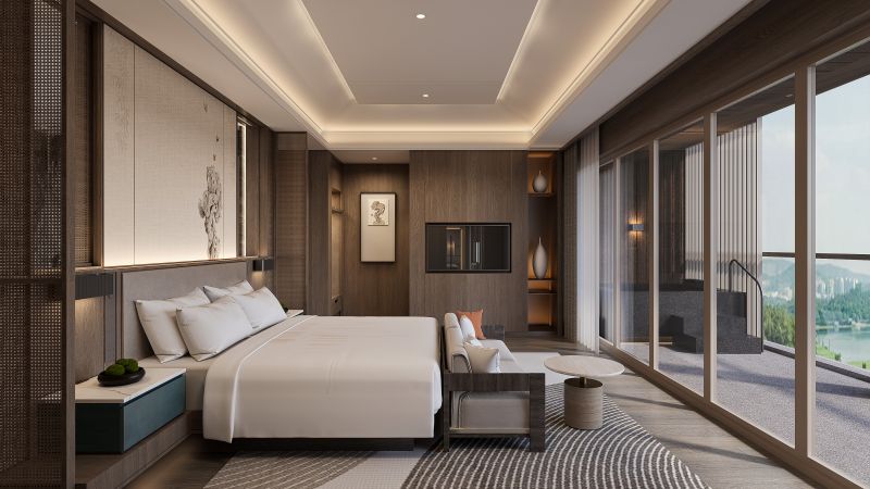 Hotel is a window of the city's external image, Radisson Hotel will also become the name card of Wuyi city. The interior design presents the traditional Chinese house and Jiangnan garden with contemporary techniques, hoping to create a quiet and leisurely mood for the guests through a more subtle and restrained way. Traditional Chinese elements such as "door", "window" and "screen" are interpreted through contemporary techniques throughout the design, so that guests can see different scenery at every step.