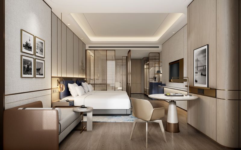 Hotel design deeply explores the historical and cultural essence of Nantong, such as blue printed fabrics, Haohe scenery and other elements, reinterpreted through modern design techniques, giving the space a unique cultural charm. Introducing a large amount of natural light and green plants to create an eco-friendly hotel, allowing guests to feel the tranquility and comfort of nature even in busy urban life.