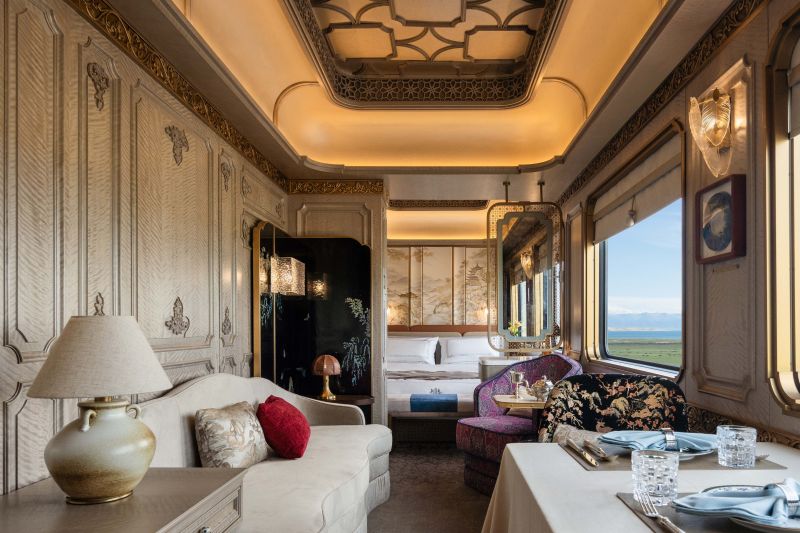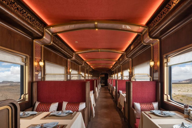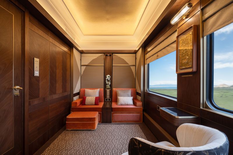The Silk Road Express, a world-class luxury train meticulously crafted by Trains of Glamour, offers passengers a unique journey that transcends the ordinary. The interior design of the train, thoughtfully curated by Studio HBA, embodies the concept of a "luxurious mobile resort," seamlessly blending the cultural essence of the ancient Silk Road from the Han Dynasty with modern aesthetics.