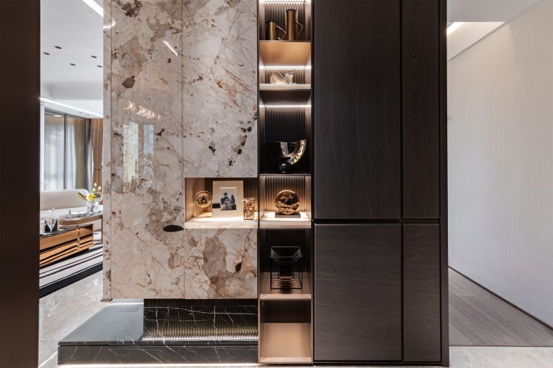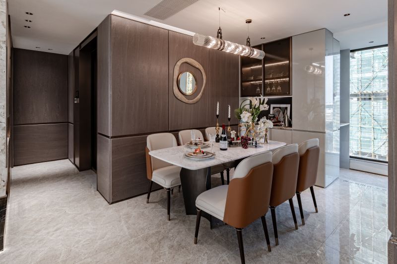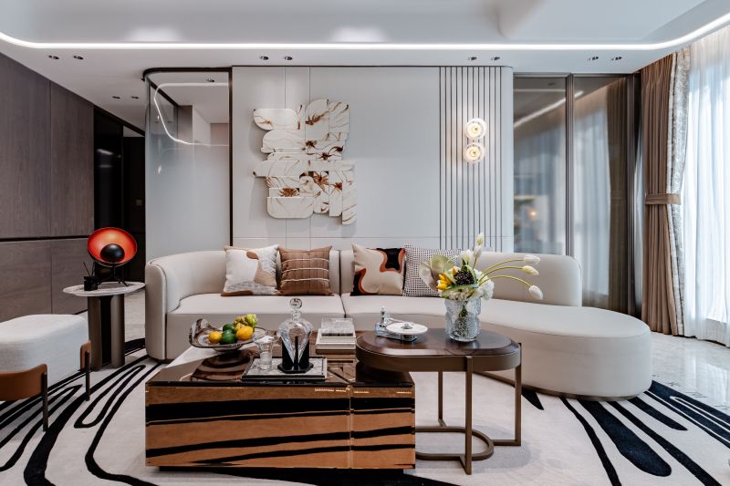 The refined application of decor and materials is prominently featured in the design. The interplay of warm woods, cool metals, and soft fabrics within the space fosters an ambiance that is comfortable and innovative. This environment evokes a blend of warmth, avant-garde, and artistic expression, three reconciled perceptions that have not been experienced before. Even among numerous instances of modern minimalist home settings, the distinctiveness of this design continues to distinguish itself.