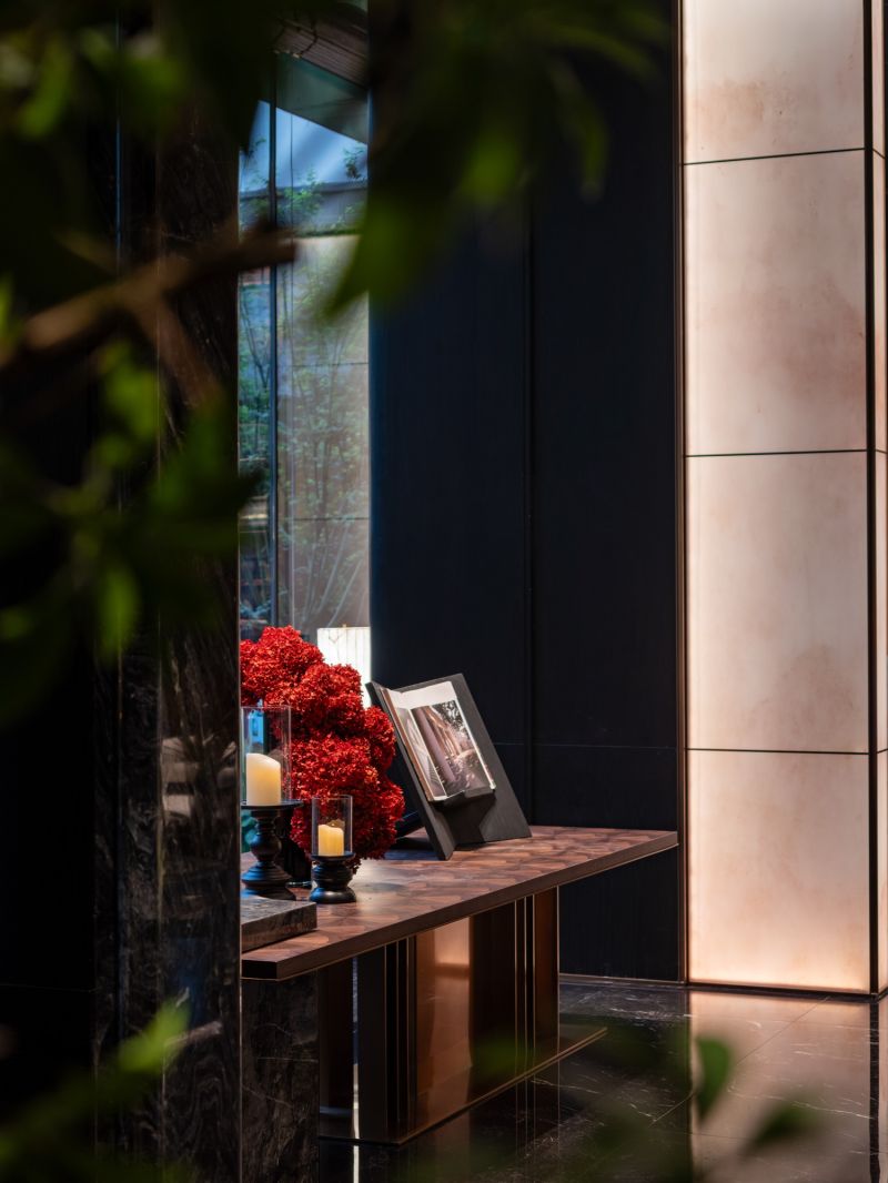 Based on the oriental art charm into the modern design of the elegant luxury, showing the modern and calm atmosphere. The passionate and unrestrained red color is particularly elegant and dignified under the lamp. With the red flowers, the red color is full of poetic feelings. Continuing the elegance of deep red, through the material and light refraction of the space level, in the depth of light and dark, especially noble. The designer uses the technique of white space to create the charm of the tea tasting space, which shows the natural flavor of different seasons in the four seasons tea room