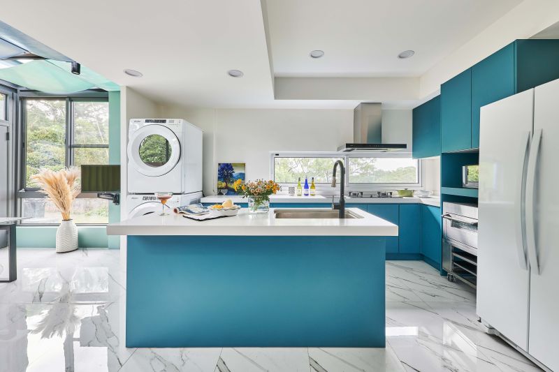 Blue and white furnishings and homochromous spray paints represent the homeowner’s favorite Greek style.