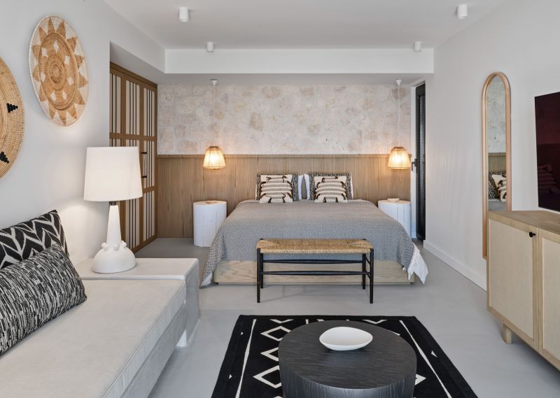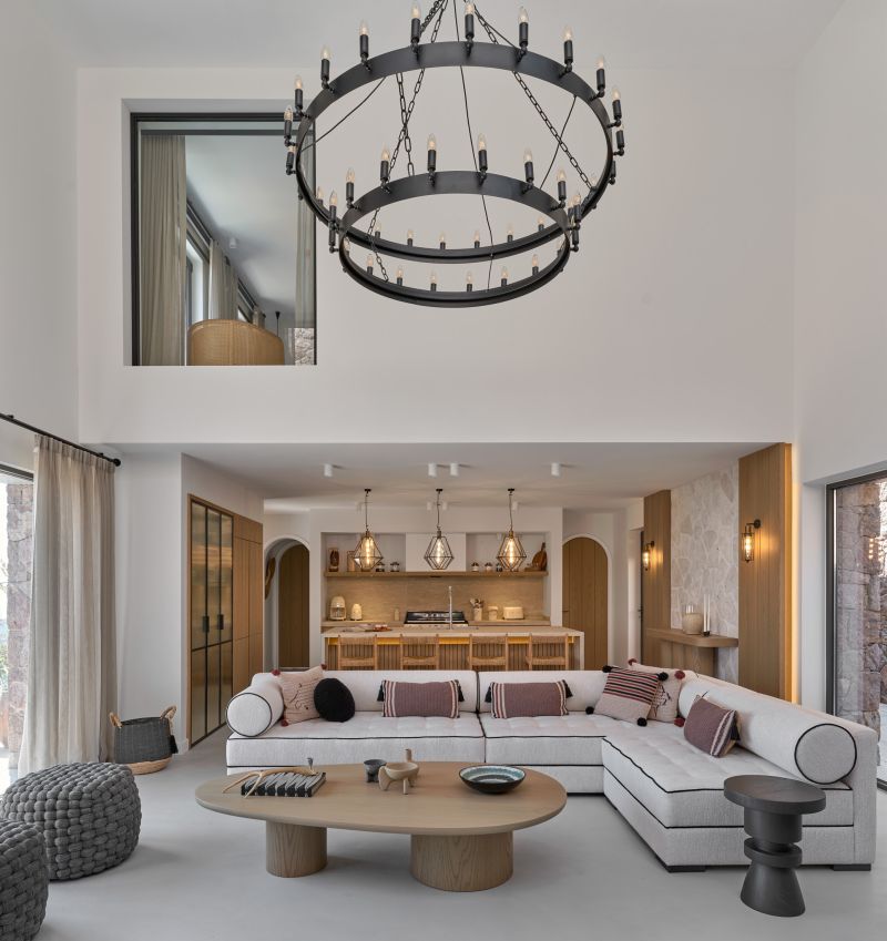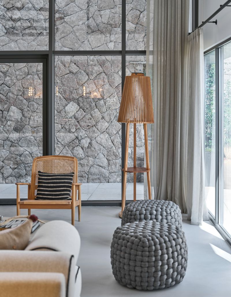 The interior of the house is 250 square meters, and the terrace and landscaping area is 220 square meters. Since the architectural and decoration processes proceed in parallel, the interior of the house was designed from scratch.