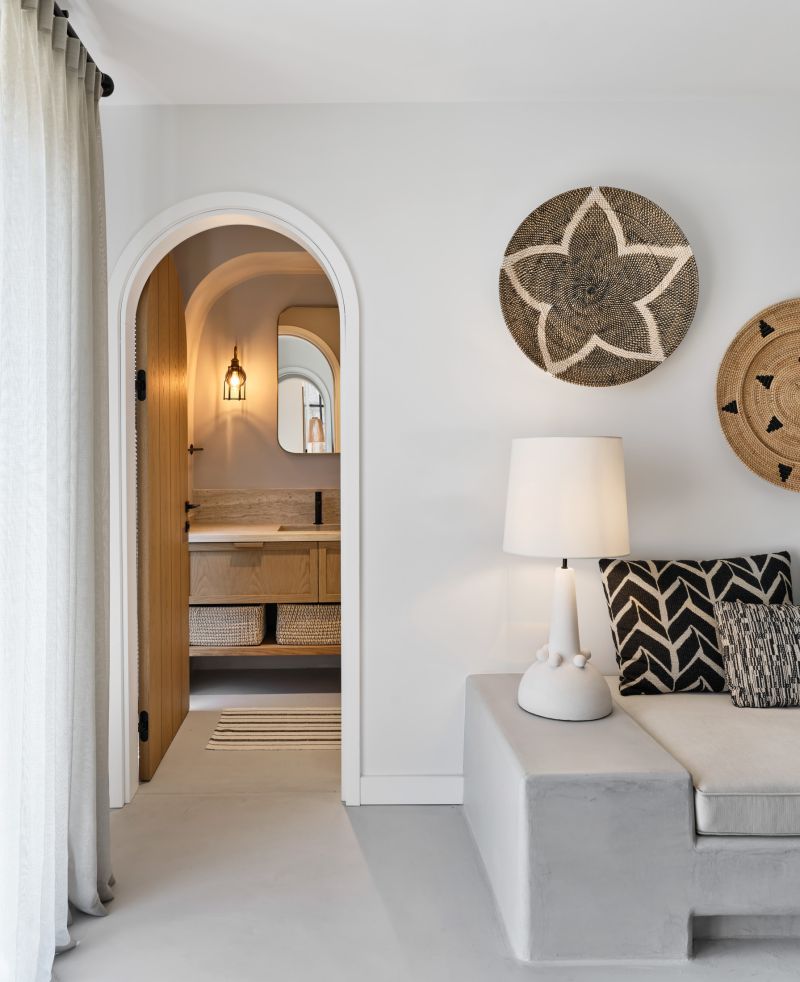 Some solutions were implemented to enlarge the interior spaces and make the areas appear spacious. In general, the house is decorated with light oak furniture and ethnic-style decorative elements.