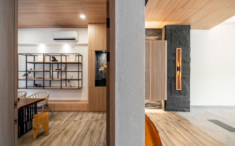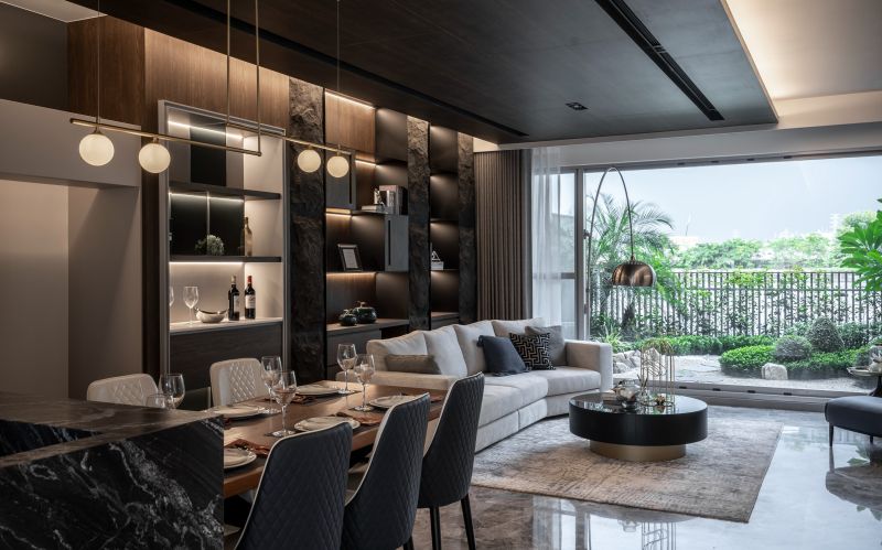 The residential, Shangri-Life, is designed to be a secluded paradise hidden in the city, a miniature utopia for the sophisticated. The design prioritizes privacy and serenity. With a wooden bench combined with the circular window and the wall design, the foyer serves as the transition into another world. Different from the foyer, the second-floor common area fosters an opposite style, presenting a refined sense of luxury, an expression of sophistication. Besides, greenery and eco-friendly materials are utilized to create a sanctuary where the occupants can live healthy and relaxing lifestyles.