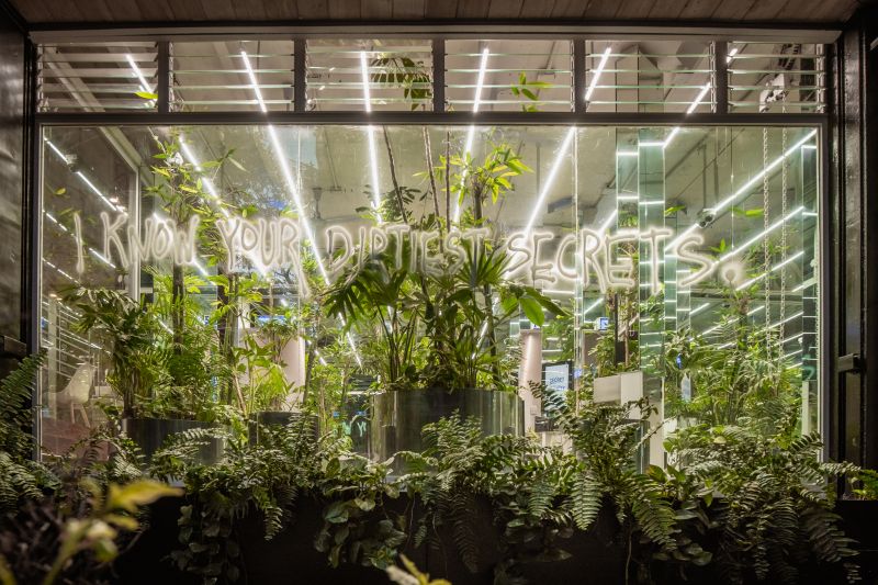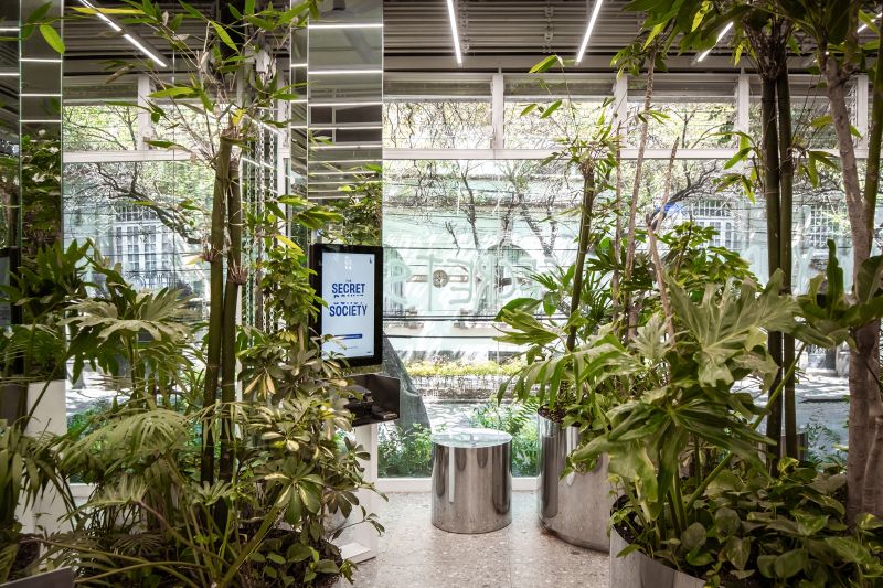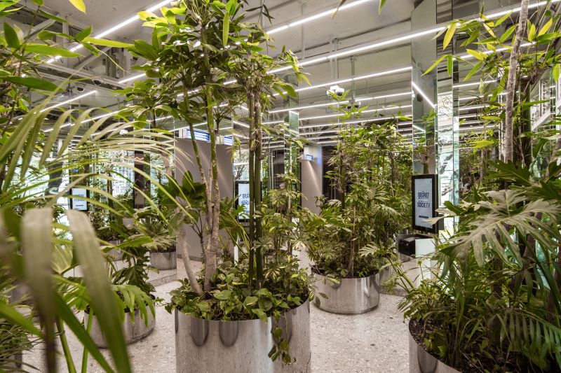 The Secret Donut Society has opened a new donut shop in Mexico City. The store transports you to a naturally created ecosystem within a scientific lab ambiance. Forest sounds and the smell of wet soil invade your senses while fans create a windy environment. After ordering on touchscreens, you’ll head to a room where nature disappears, and you become part of a digital realm where all eyes are on you. This room, full of security cameras and mirrors, aims to capture your every move. Upon exiting, you find yourself back with nature and soon enough, back into reality.