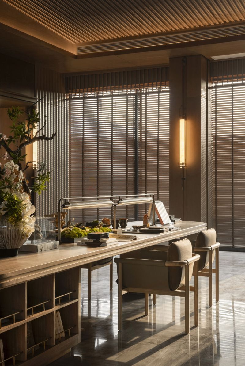 With garden as the carrier, the beauty of Song dynasty rhyme. Through the space language, the artistic atmosphere carries on the dialogue between the five senses with the audience, and appreciates the multi-dimensional classical humanistic atmosphere. In the interior space, we continue the architecture, the landscape of the mortise and tenon structure and elegant style, green tiles embroidered households, high terraces and thick pavilions, retro and dignified, full display of ancient Chinese architectural culture.